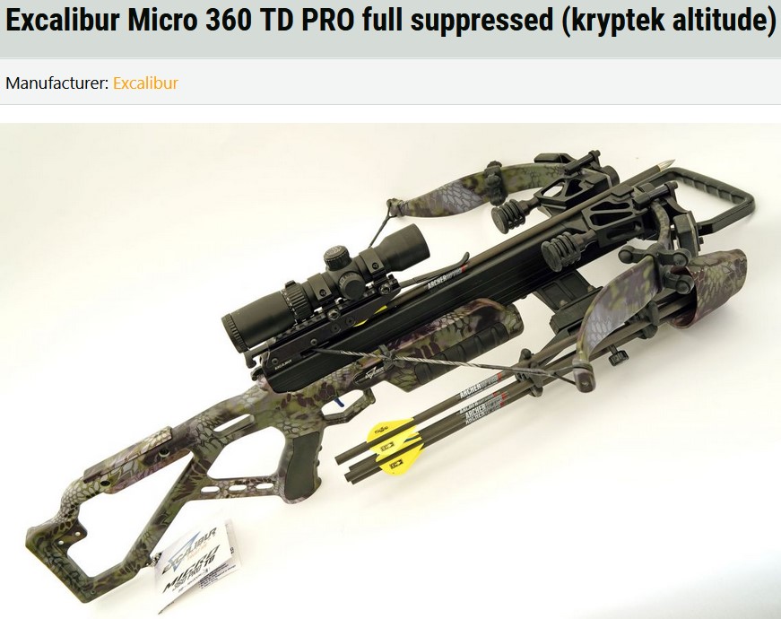 Description: The Excalibur Micro 360 TD Pro can easily go through bulletproof gear, it will also go through SWAT team helmet.