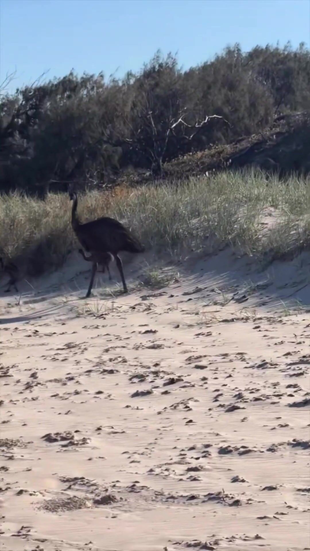 Australian girl catches rare glimpse of Emu walking on the beach with her chicks