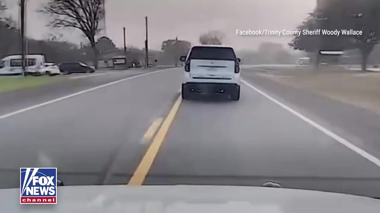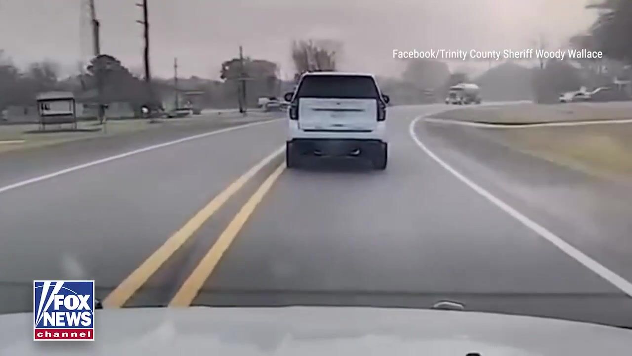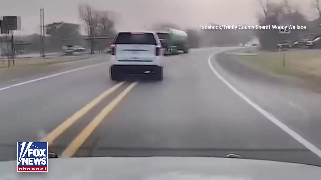 CHRISTMAS CRASH: Dramatic video from Texas shows a car slamming into an 18-wheeler after officers tried to get a sleepy driver's attention, officials said.