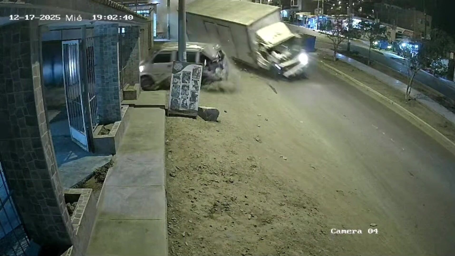 Truck loses control and crashes into a van
