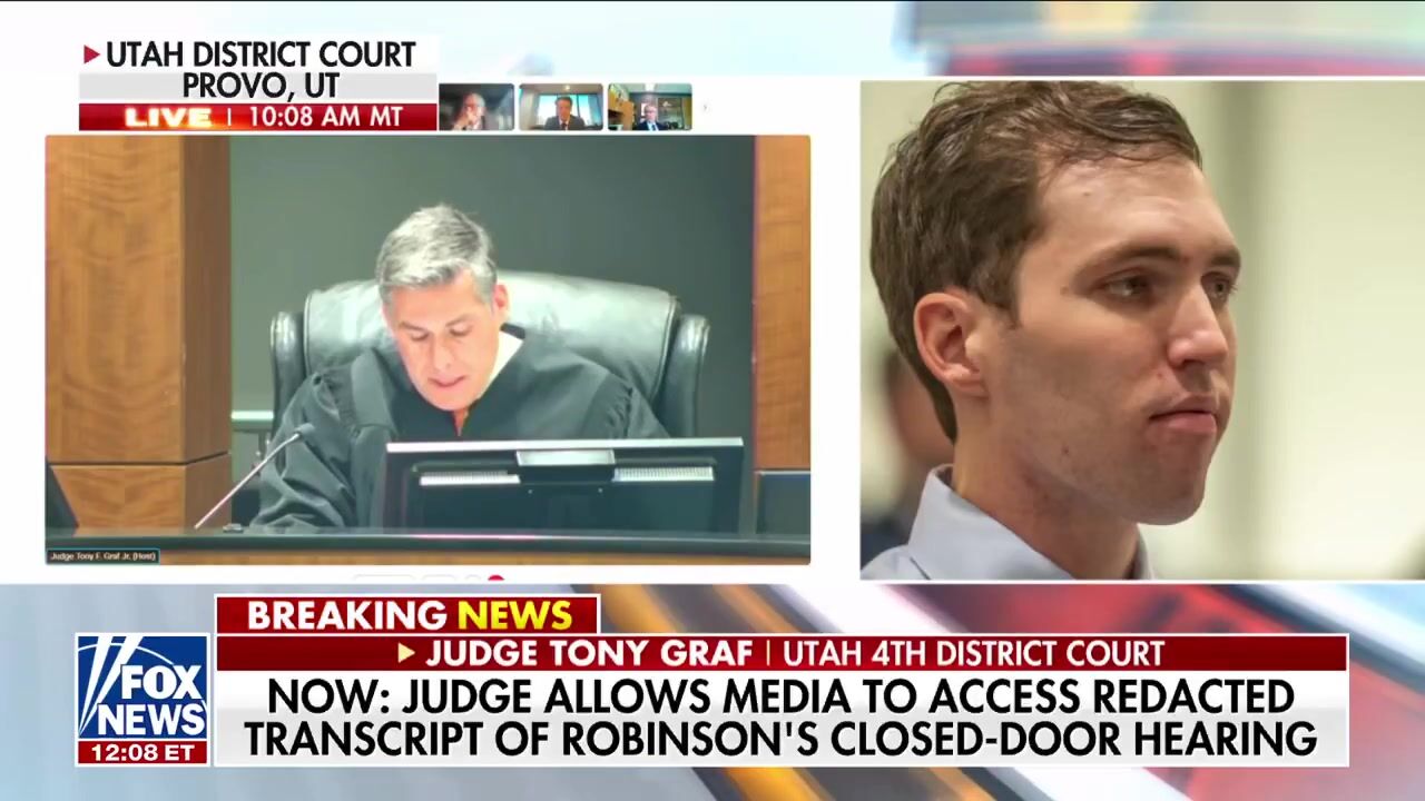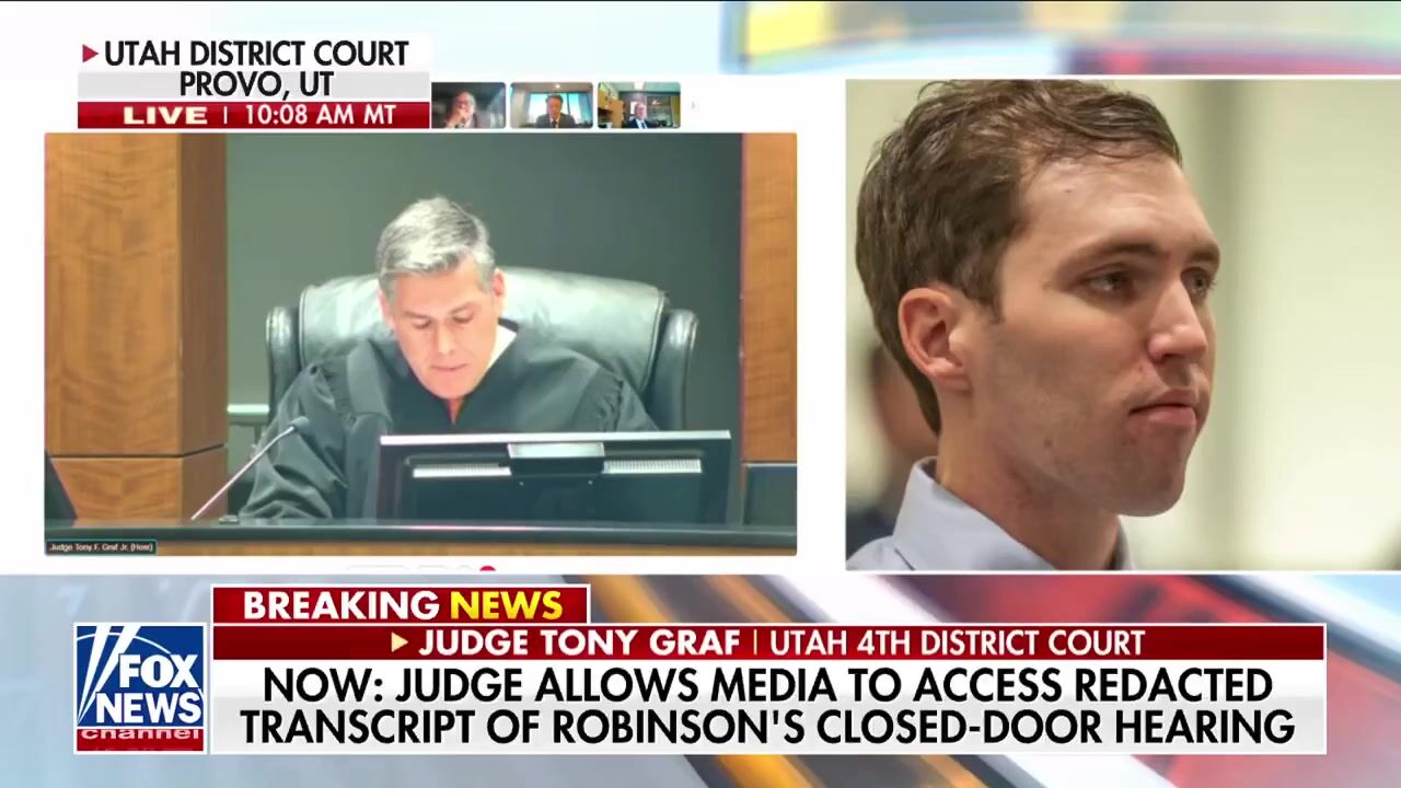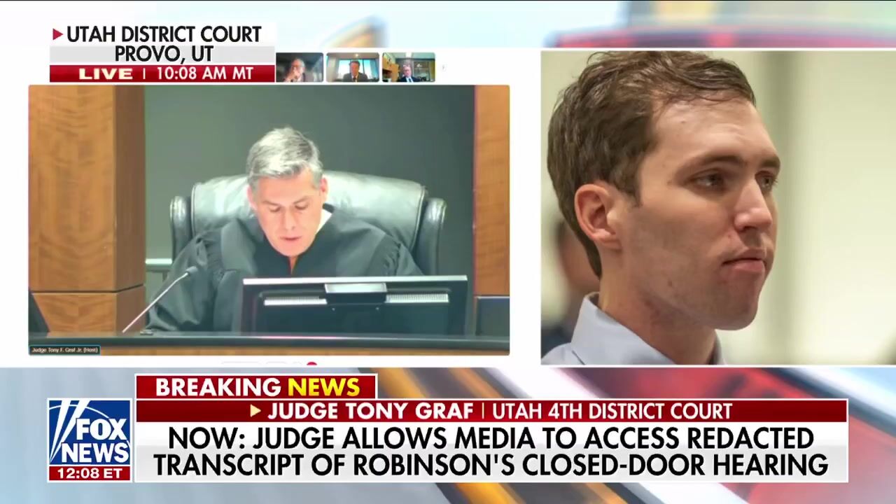Judge overseeing case of Charlie Kirk’s accused assassin allows media to access redacted transcript of Tyler Robinson’s closed-door hearing.