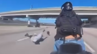 Video shows a motorcycle crash that shut down a stretch of Interstate 75 in Miramar on Sunday.
