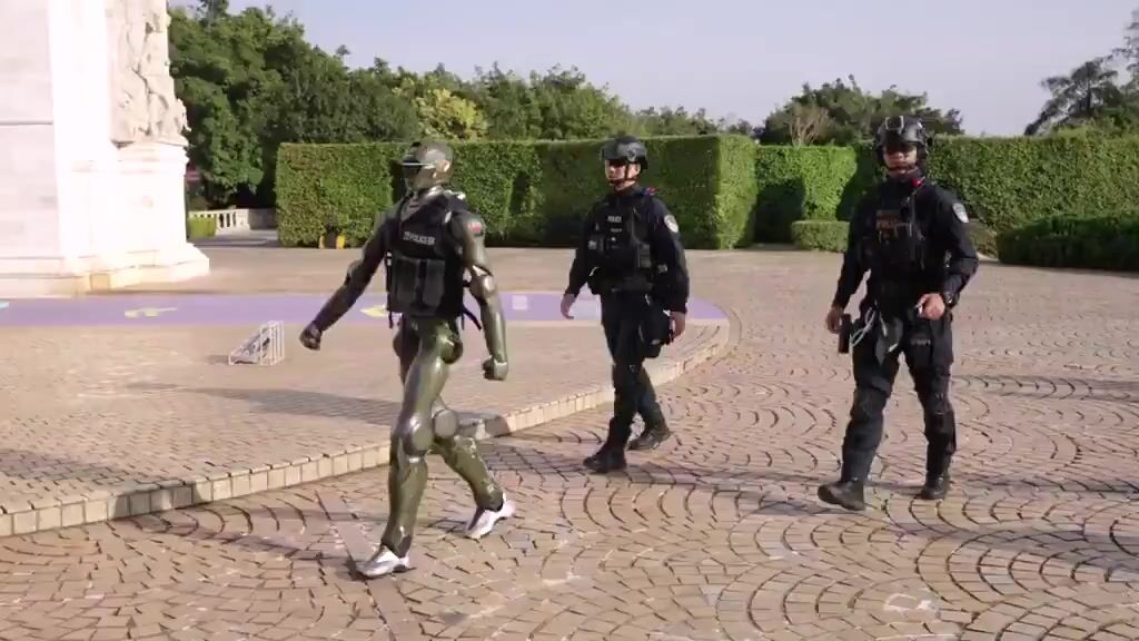 In the south of China, a humanoid robot straight out of a sci-fi movie was spotted walking side by side with real armed cops.