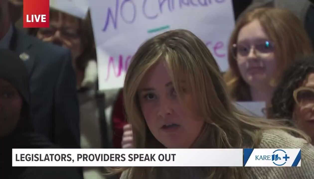 Daycare activist covers her mouth after she slips and says "there IS fraud"