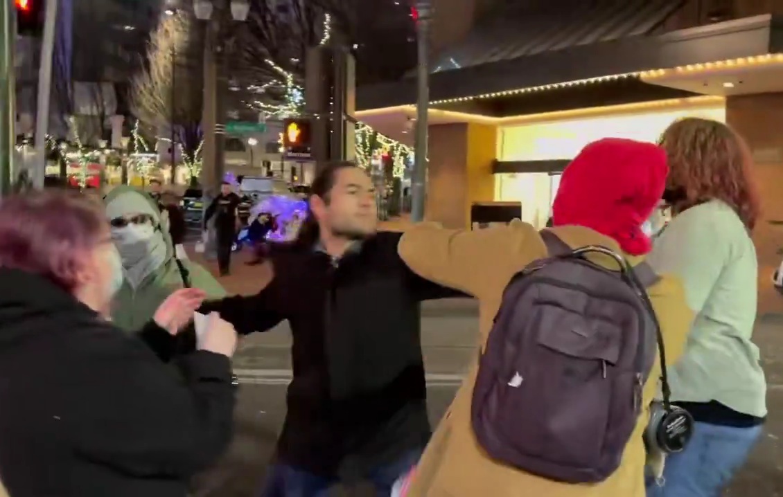 HOLY CRAP! A Portland resident being HARASSED by Antifa while walking Downtown just CLOCKED THEM in the street