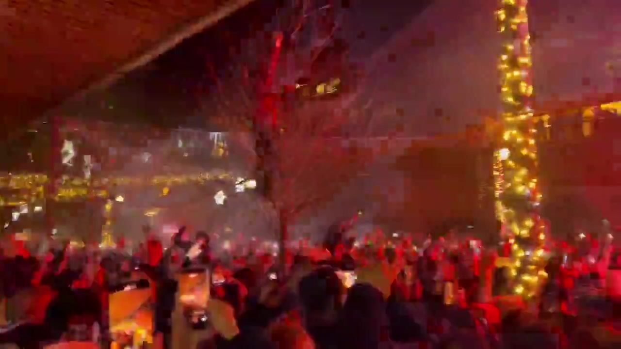 It was in an underground discotheque. This vid shows an outside scene of music.