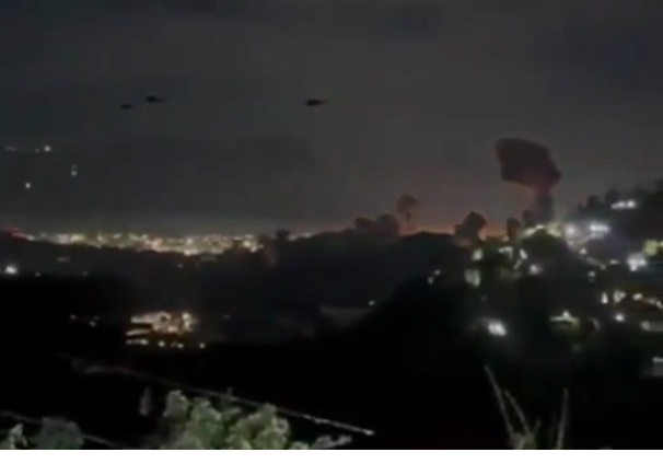 BREAKING: Suspected US Apache attack helicopters seen TOTALLY DOMINATING the skies above Caracas, Venezuela while explosions ring out