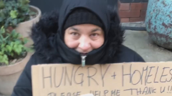 This man confronts a woman who cannot speak English but is part of a gang of Roma Gypsy's who prey on the good nature of the British public