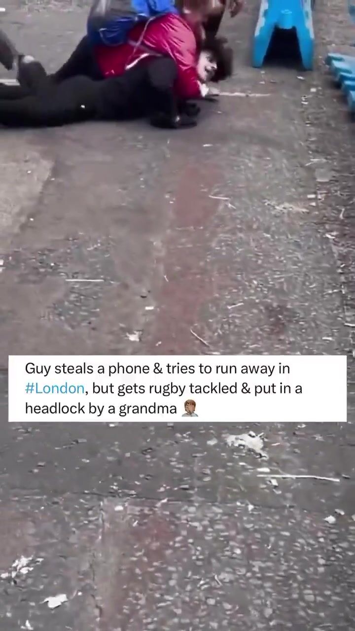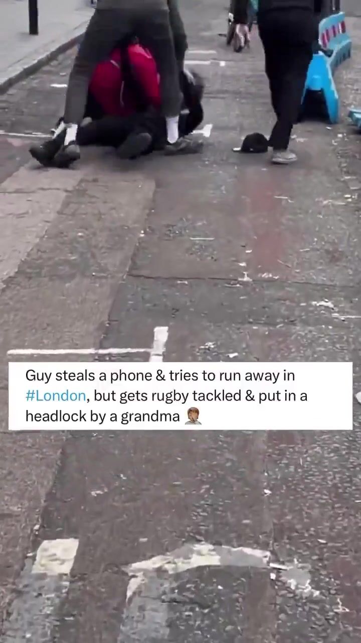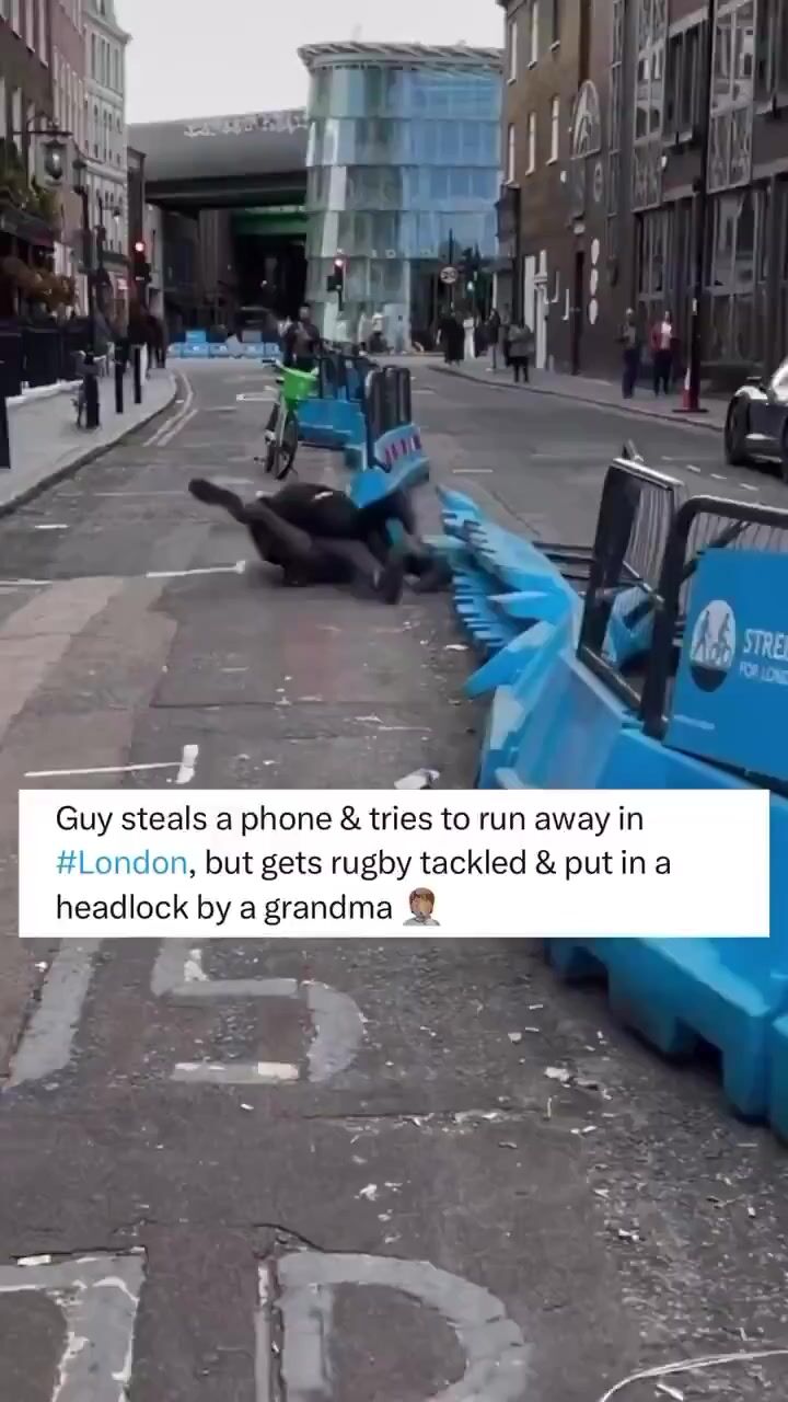 The phone thief was very carefully neutralized by a passerby, who apparently turned out to be a rugby player, after which his grandma strangled him from behind.