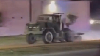 The "military-style" truck -- as first described by HCSO -- was seen barreling down the road, with deputies in pursuit.