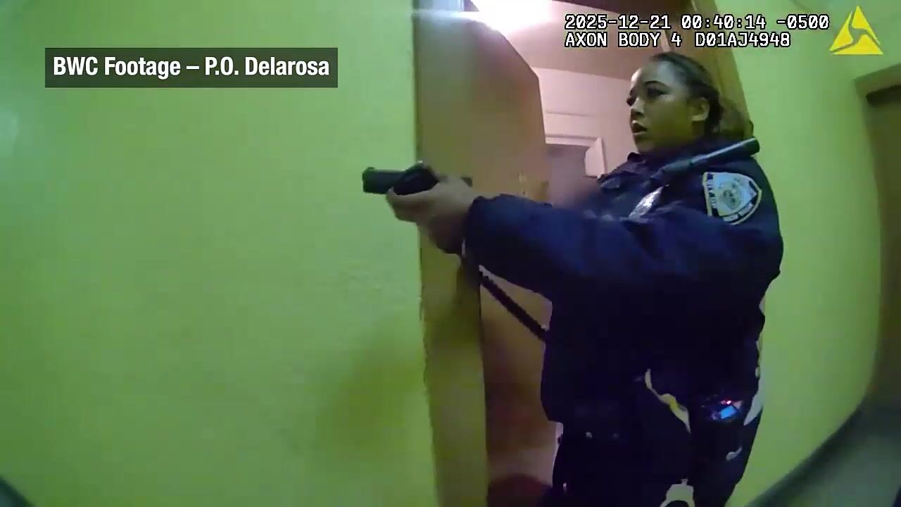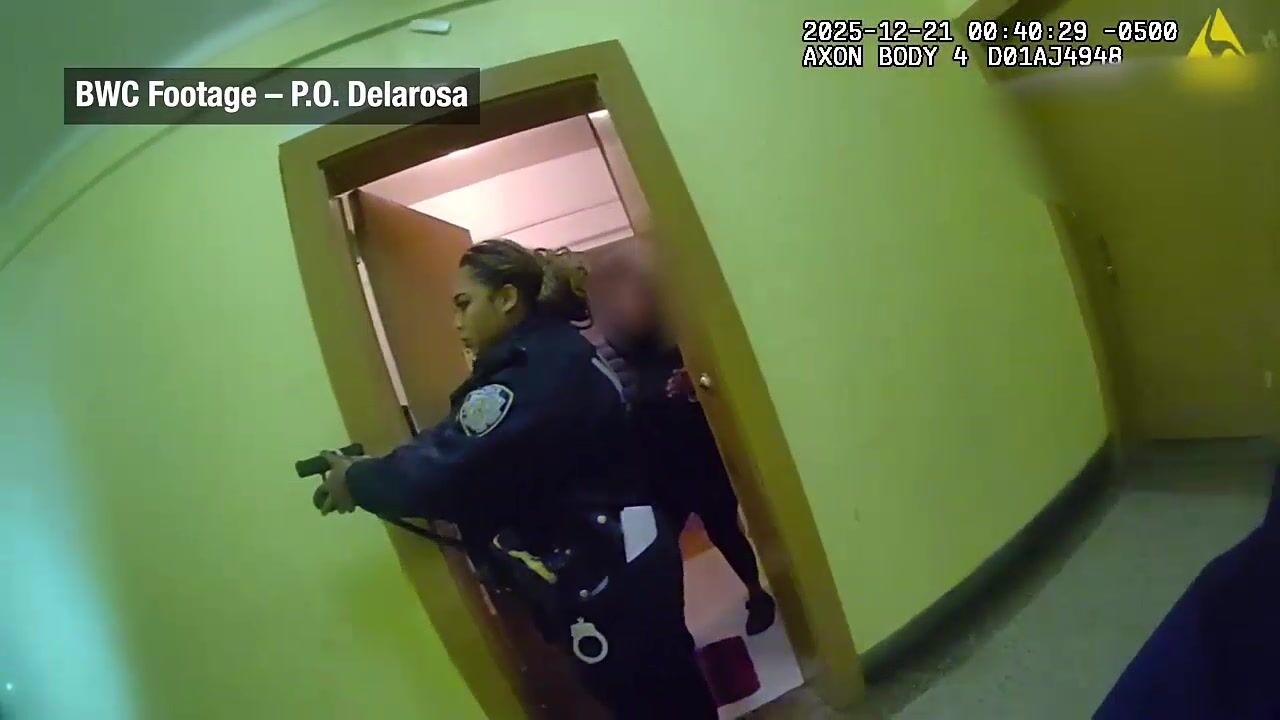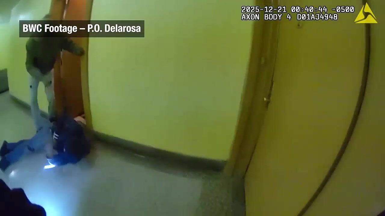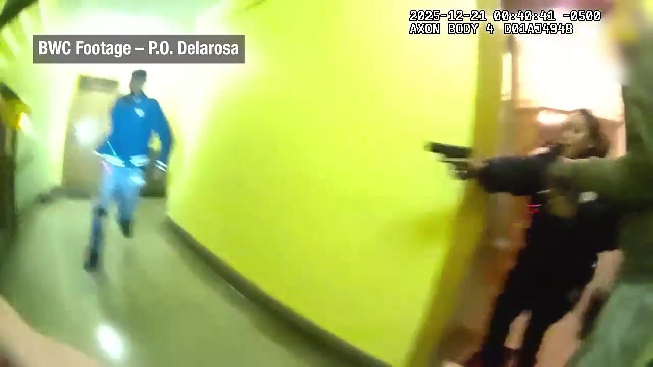 "The officers searched the apartment. However, the male was not inside. As the officers and the parents were exiting the apartment, the male was observed in the hallway outside of the apartment with a box cutter in his hand," the chief said at a Sunday morning news conference. "The father of the male immediately engaged in an altercation with his son, which then became physical."