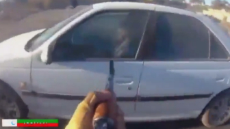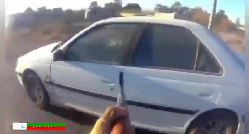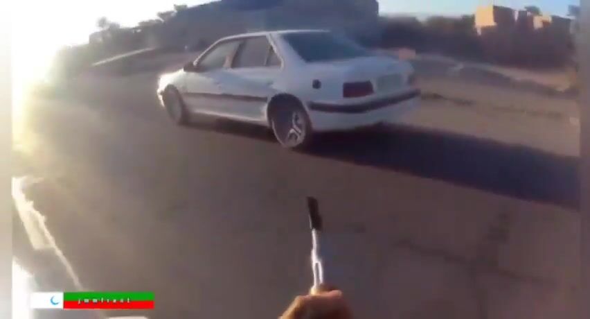 The moment of the assassination of Mahmoud Haqiqat, commander of the police station in Iranshahr, Iran.