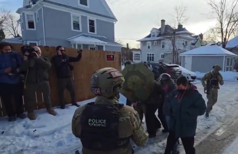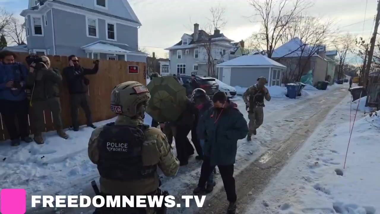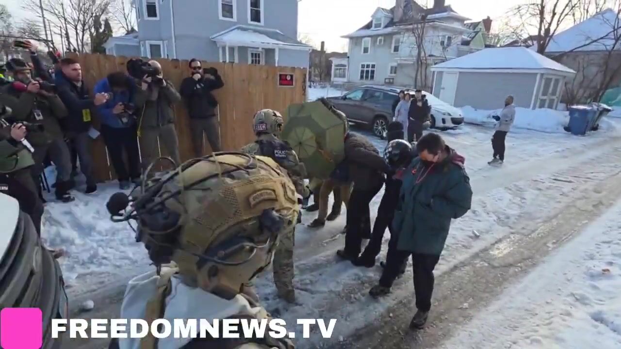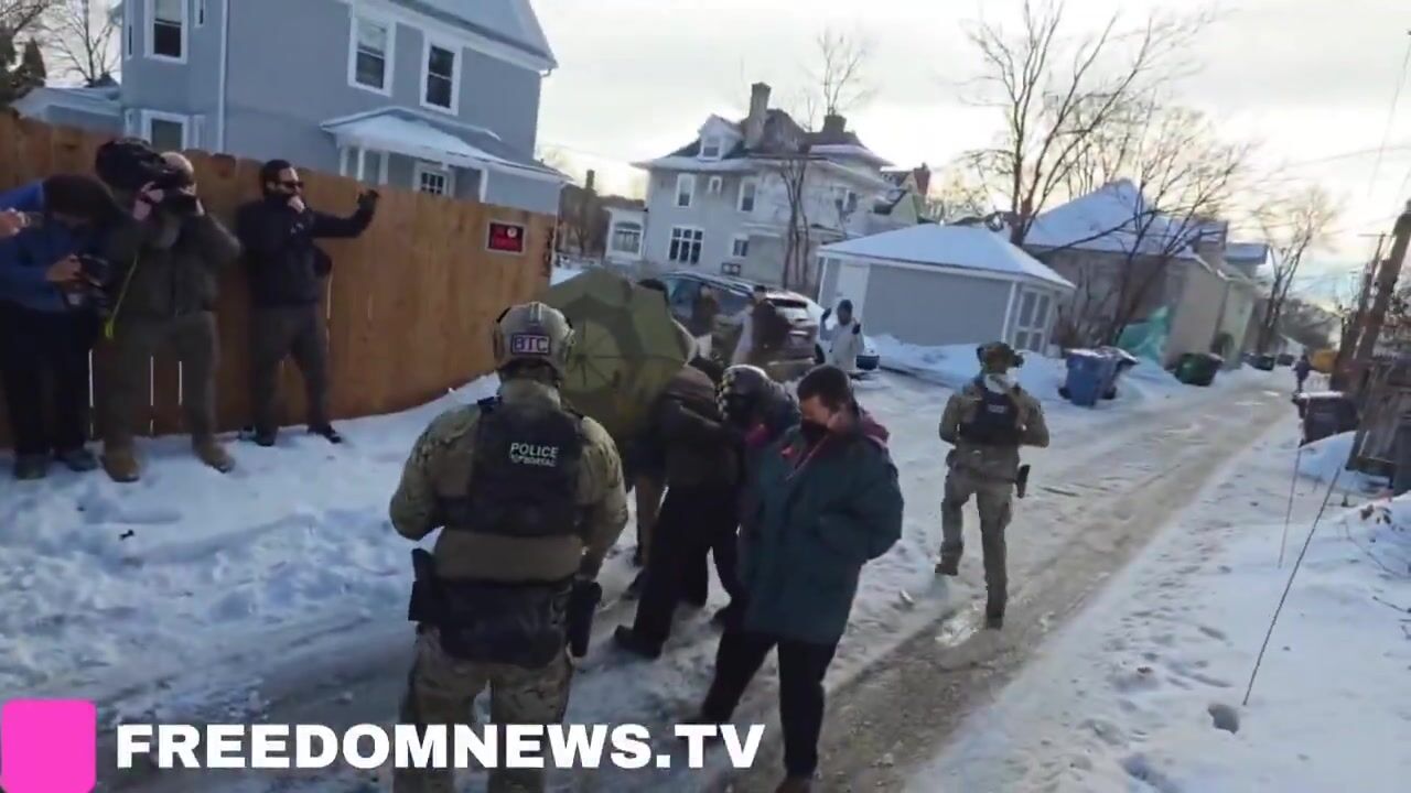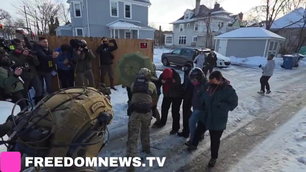 Protesters throw snowballs and some are Pepper Sprayed as they attempt to block Federal Vehicles from moving