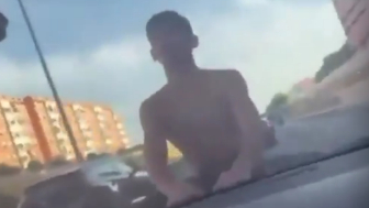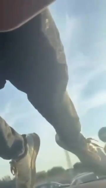 Moroccan migrant JUMPS onto a woman’s car on the highway, trying to assault her