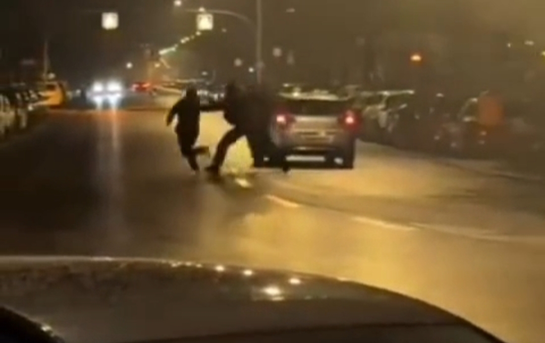 Suspect fleeing from German police gets body-checked by an officer