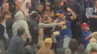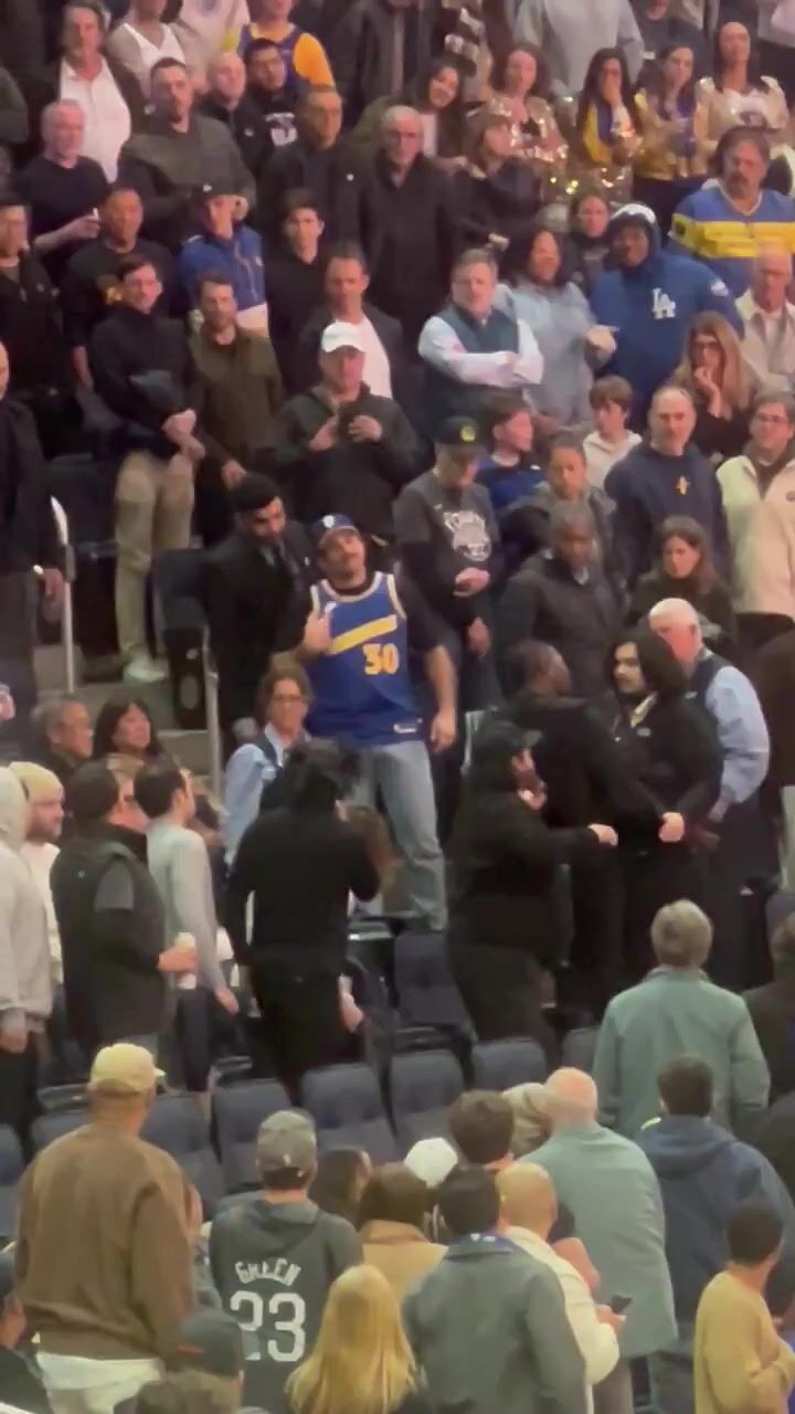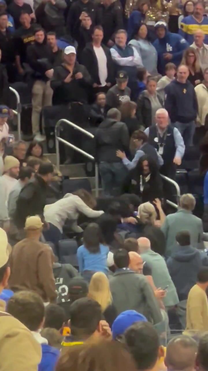 Video of the fight shows a man in a Steph Curry jersey and a Warriors hat raining punches on a person in the next seat over. The video shows multiple people trying to intervene before Chase Center security broke up the fight. Officers with the San Francisco Police Department also helped calm things down