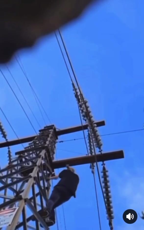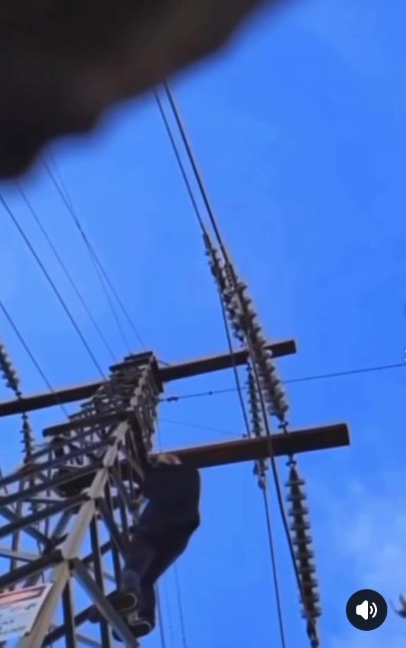 Now they need to put up a warning sign stating that the electricity can arc through the air to your body without contact with the line. You know that he is not the only or the last person who will try this.