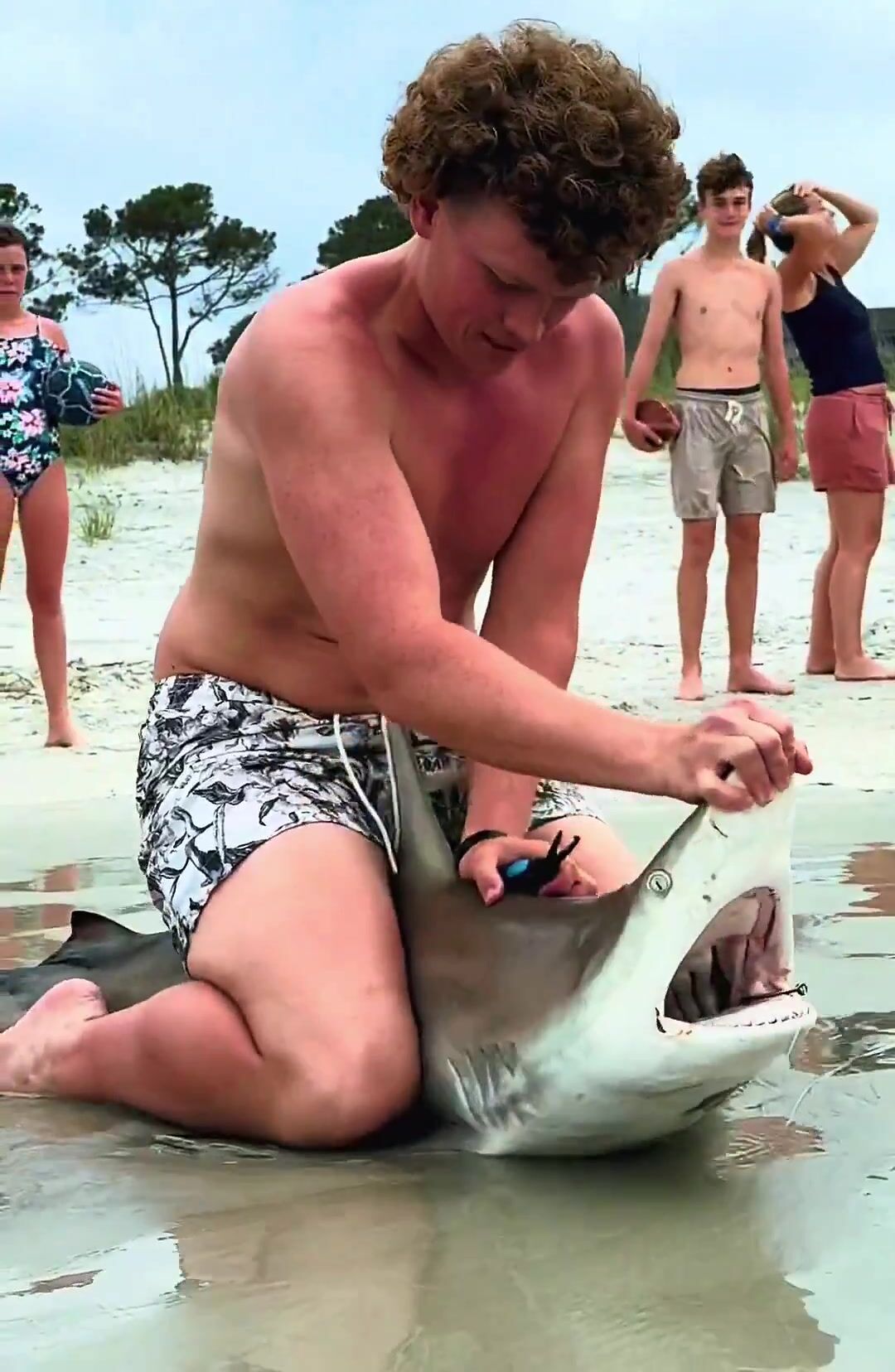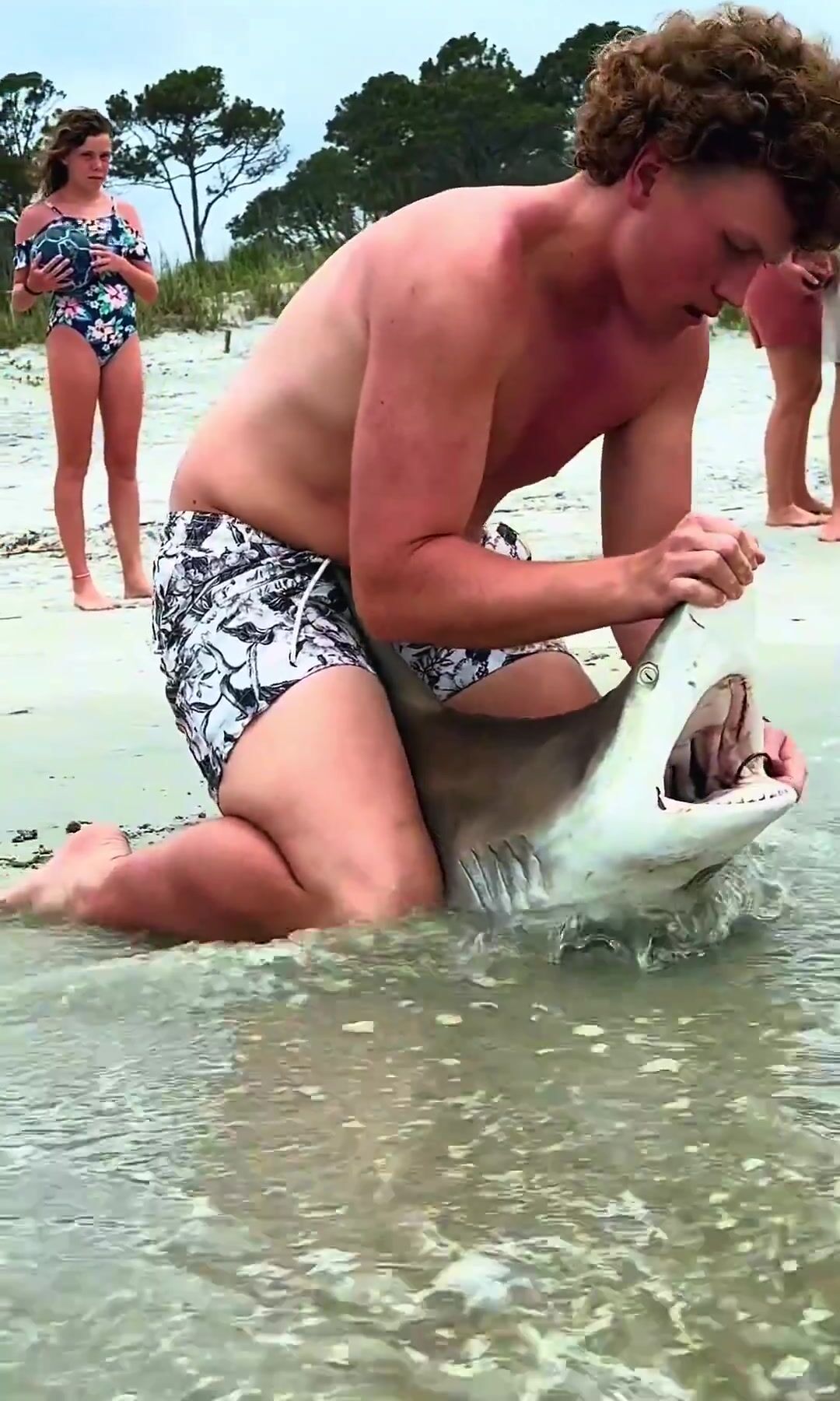 «That toothless lil baby was no danger & well done young man - when he grows up to be a Great White he might bite ya legs off to say thanks»