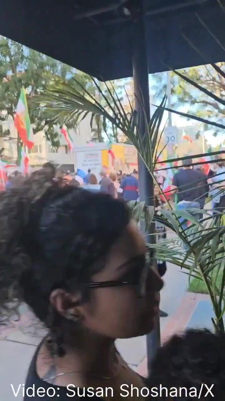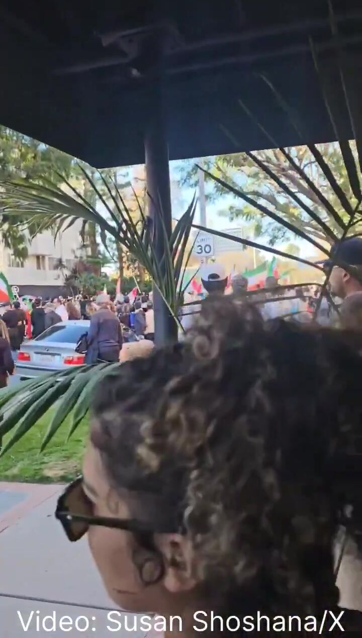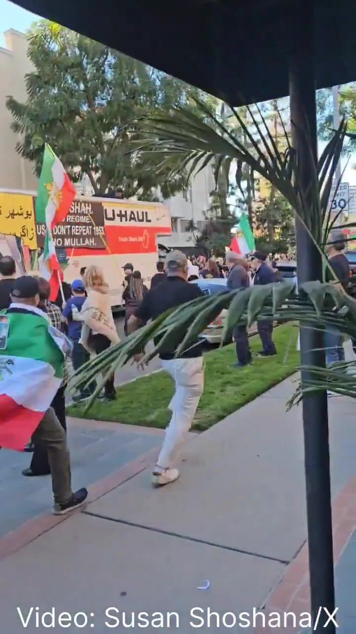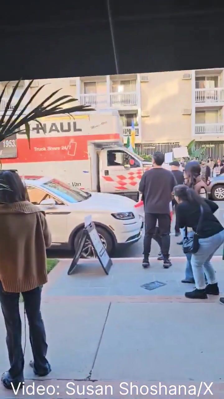 video shows the moment person drove U-Haul truck into Iranian protest in Los Angeles, California. Multiple injuries.
