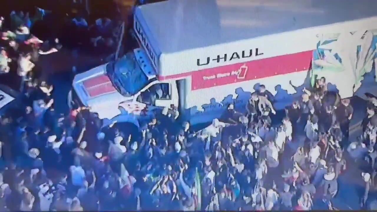 New footage of the aftermath after person drove U-Haul truck into Iranian protests in Los Angeles, California, injuring several people.