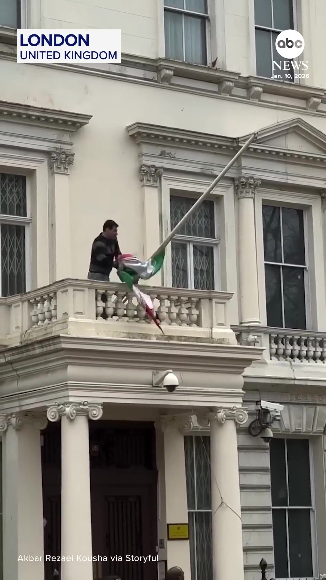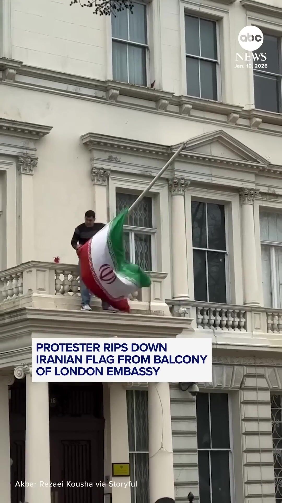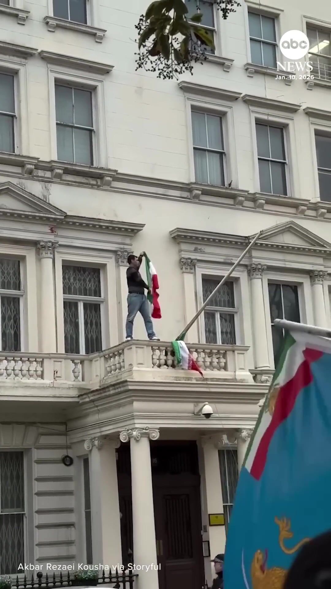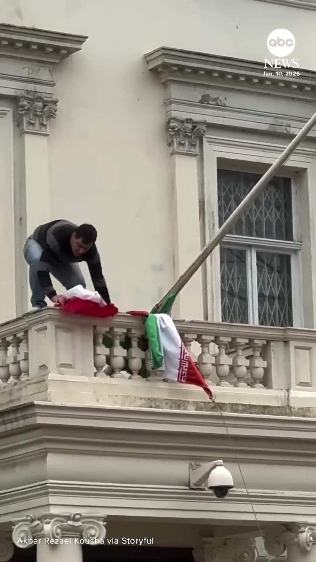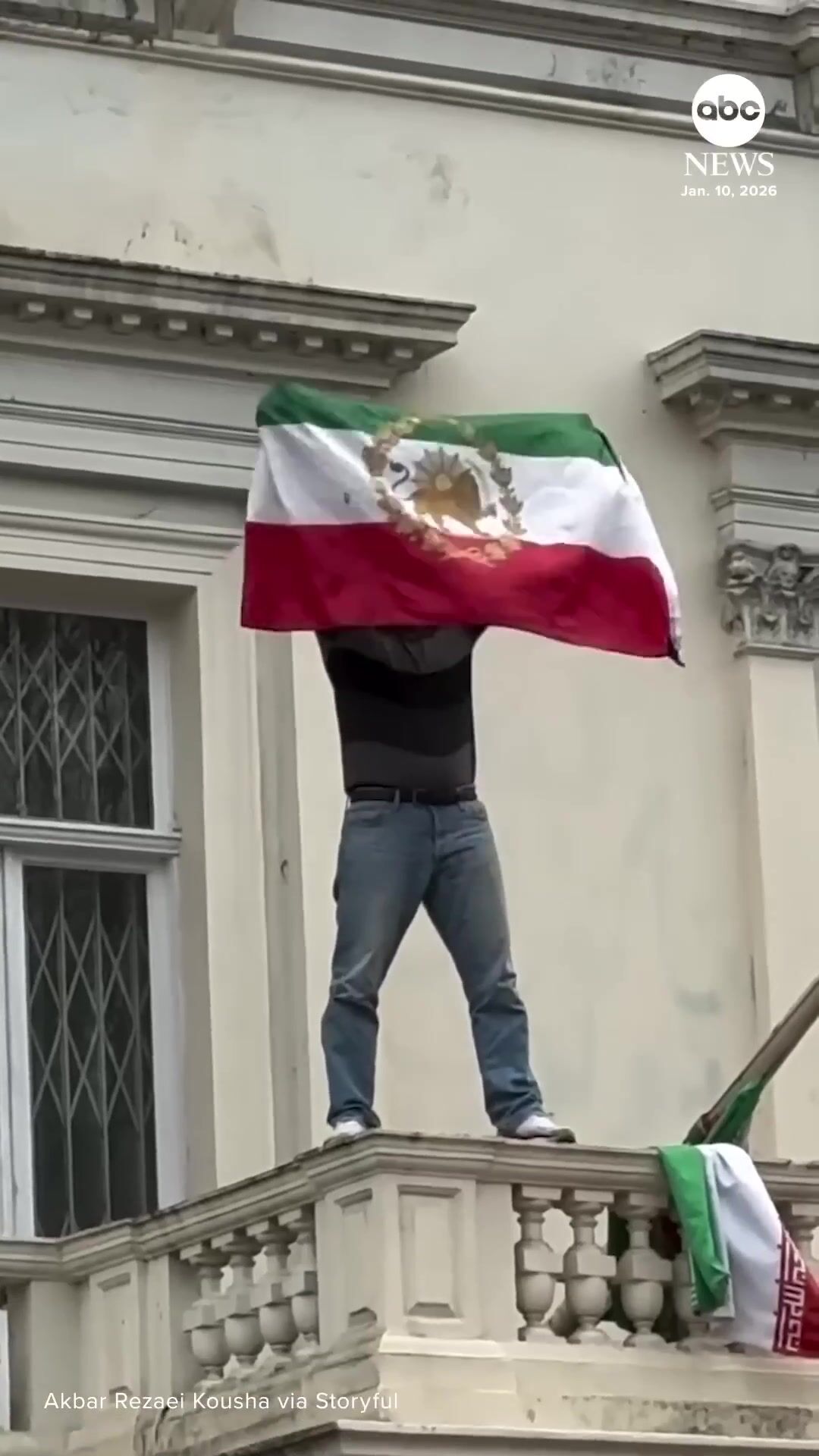 FYI, the traditional Iranian flag he holds up was banned and replaced in 1979 with an Islamic version