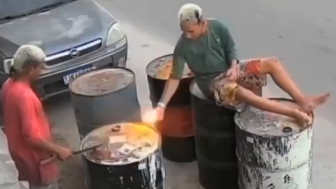 Two young men in Recife, Brazil, got hurt on Wednesday after playing with a lighter and causing a barrel to explode.