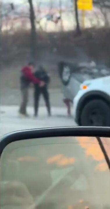 A police chase linked to a reported shooting came to a sudden and violent end when the vehicle rolled over on the expressway, throwing three suspects onto the roadway. The suspects were being chased at the time, and weapons were recovered from the vehicle.
