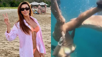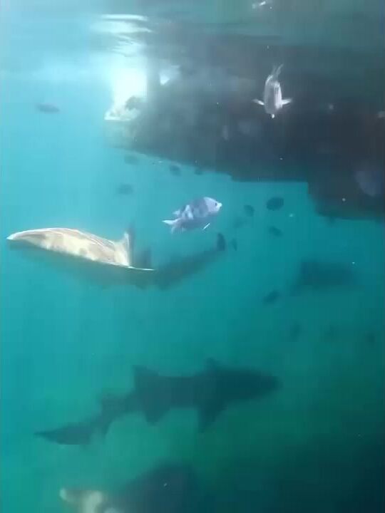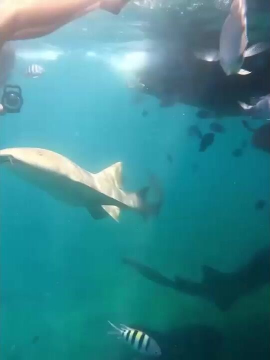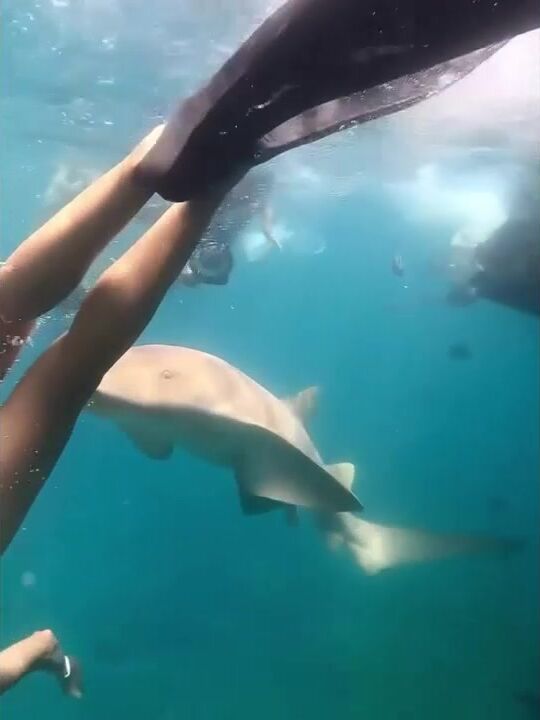 The footage shows nurse sharks circling Tayane Dalazen, 36, as she swims in Brazil’s Fernando de Noronha archipelago, when one speeds towards her and chomps down on her thigh.