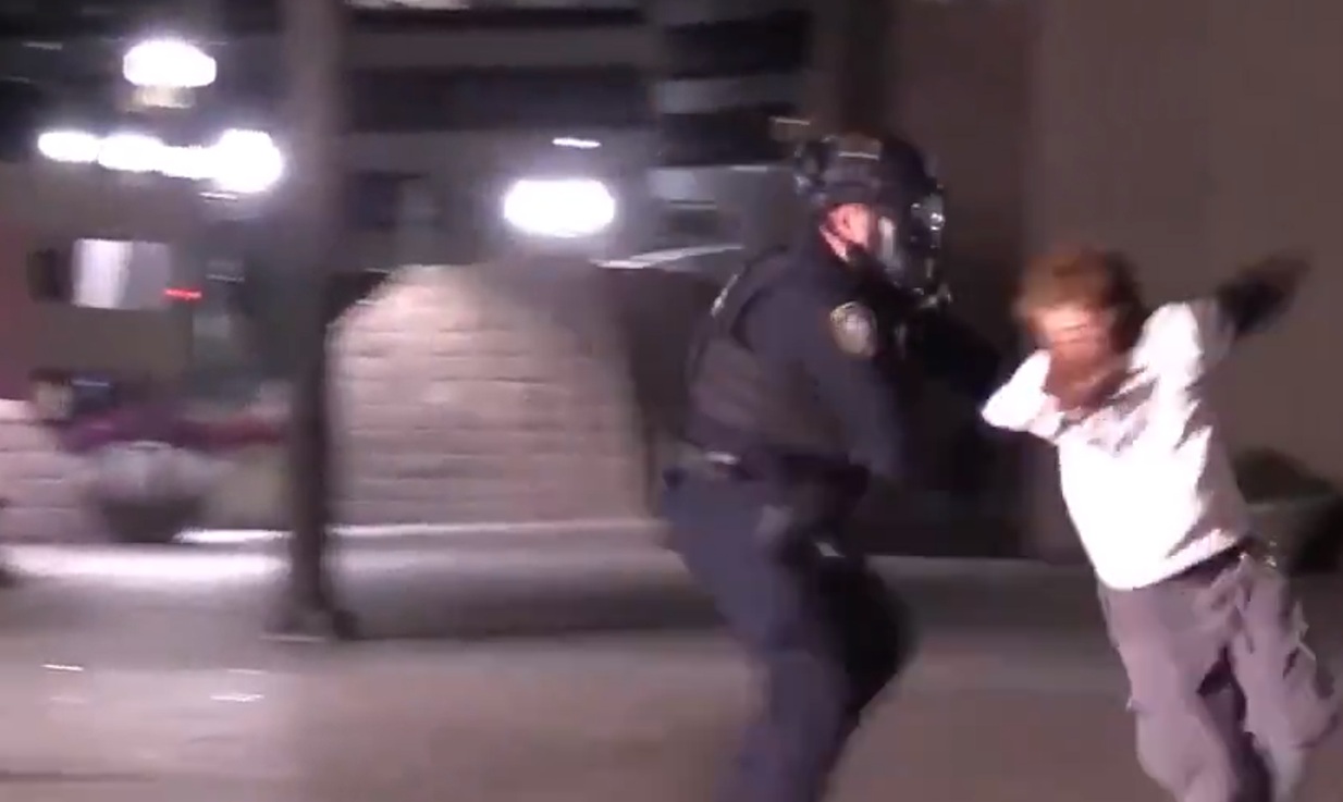 A 21-year-old in Santa Ana was permanently blinded in one eye after a DHS agent fired a “less-lethal” round at close range