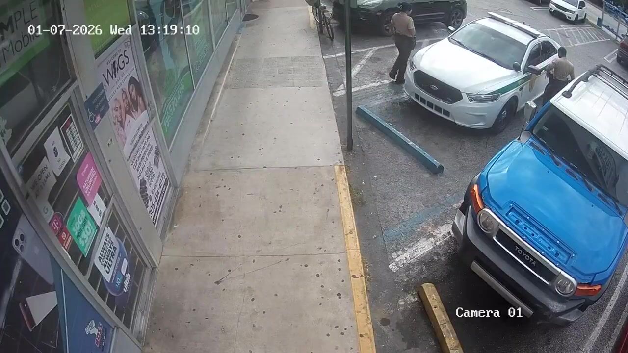Surveillance video shows the moment a Miami-Dade Sheriff's deputy gave a store owner in North Miami the middle finger. The Miami-Dade Sheriff's Office said in a statement Wednesday that it is aware of the Jan. 7 incident at a wireless store, and there is an open and active internal affairs investigation. "MDSO remains committed to transparency, accountability, and professionalism," the statement said. Before the incident, the store owner called 911 to report that a man had threatened to smash up his business with a tire iron after accusing the store of selling him fake AirPods, which the owner denies. The middle finger happened after the store owner apparently got into a dispute with the deputy over her handling of the case.