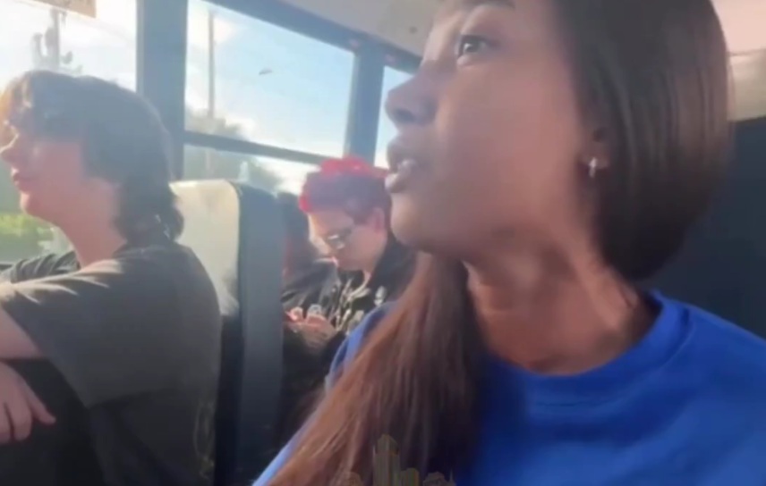 Young lady shares the gospel on the school bus and gets interrupted by fellow peer
