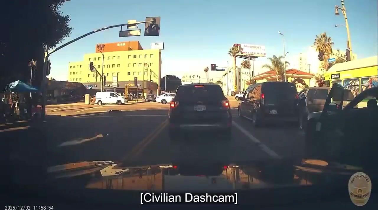LAPD says the detective intervened and ordered the suspect to drop the knife, but was forced to open fire.