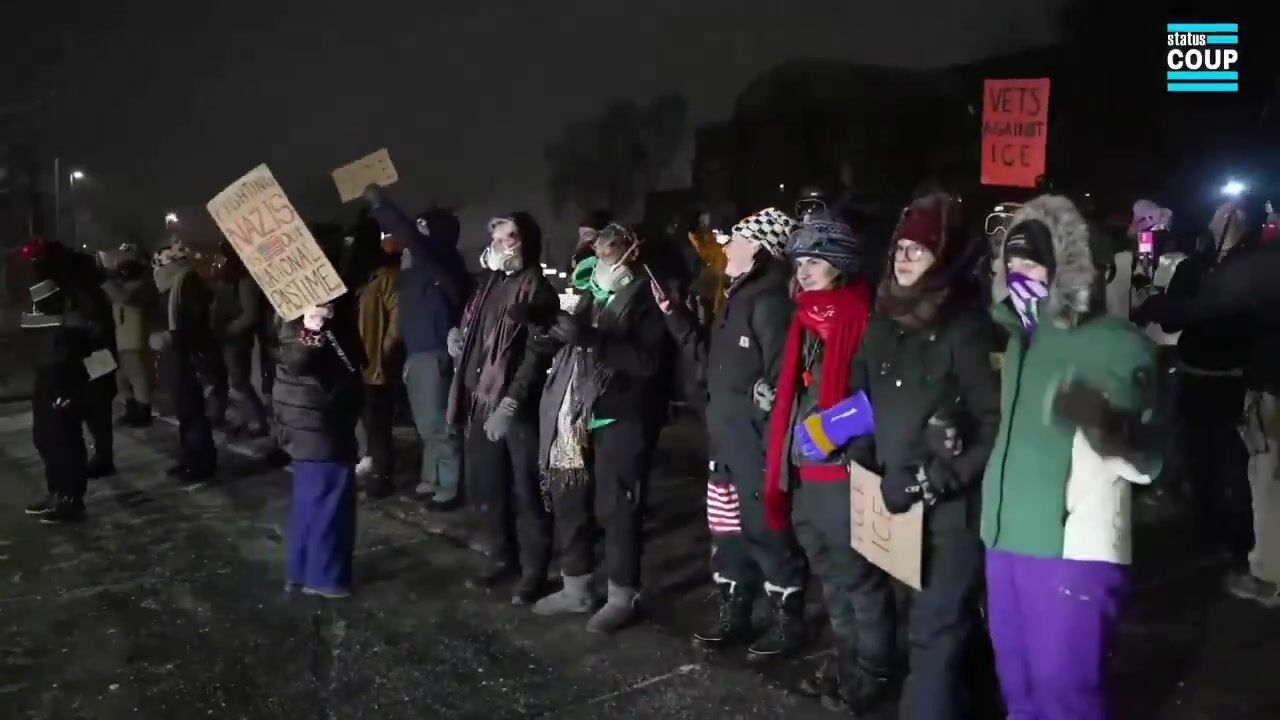 Dancing Liberals: With arms linked and snow falling, Minneapolis protesters dance while ICE agents back off.