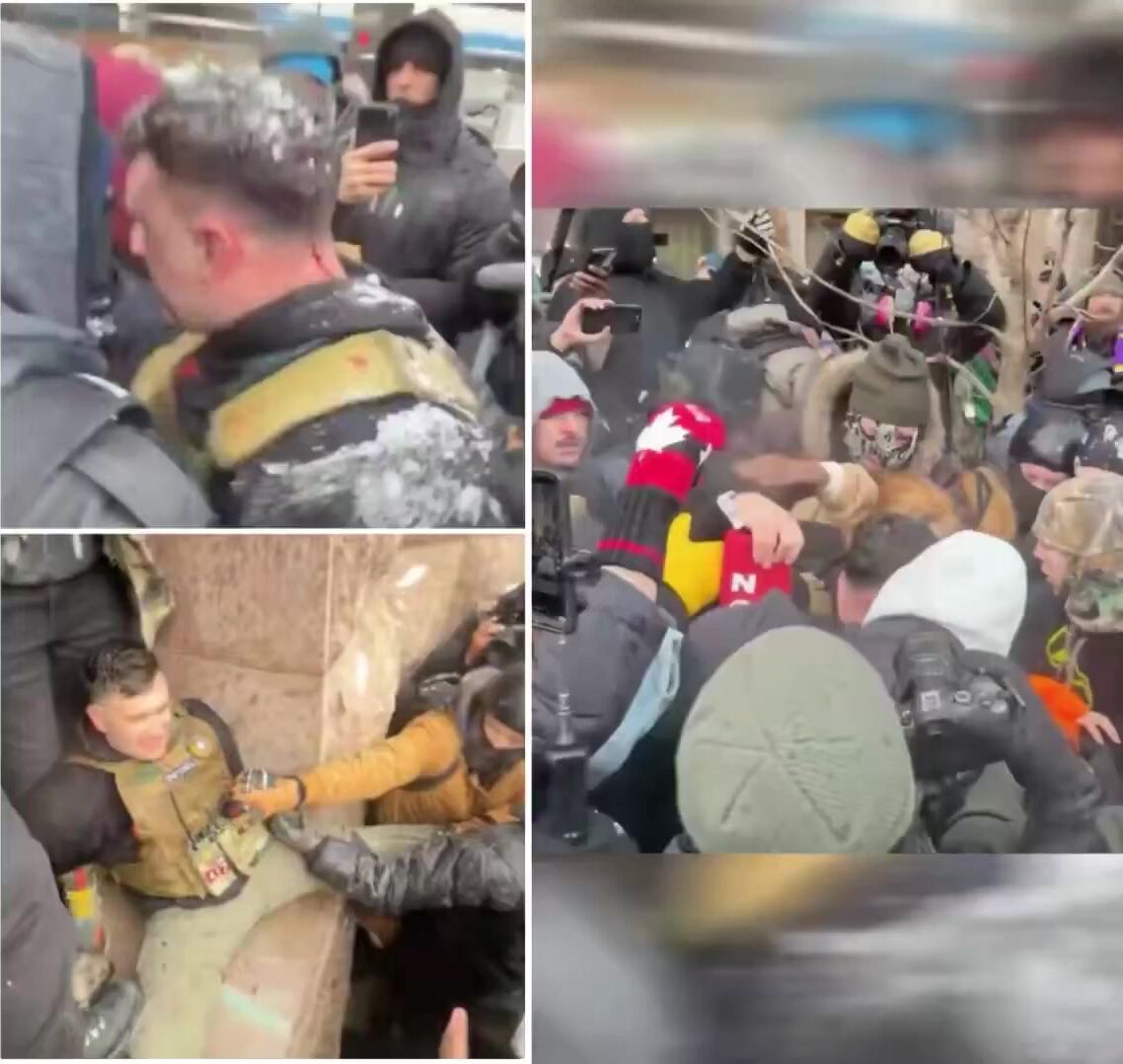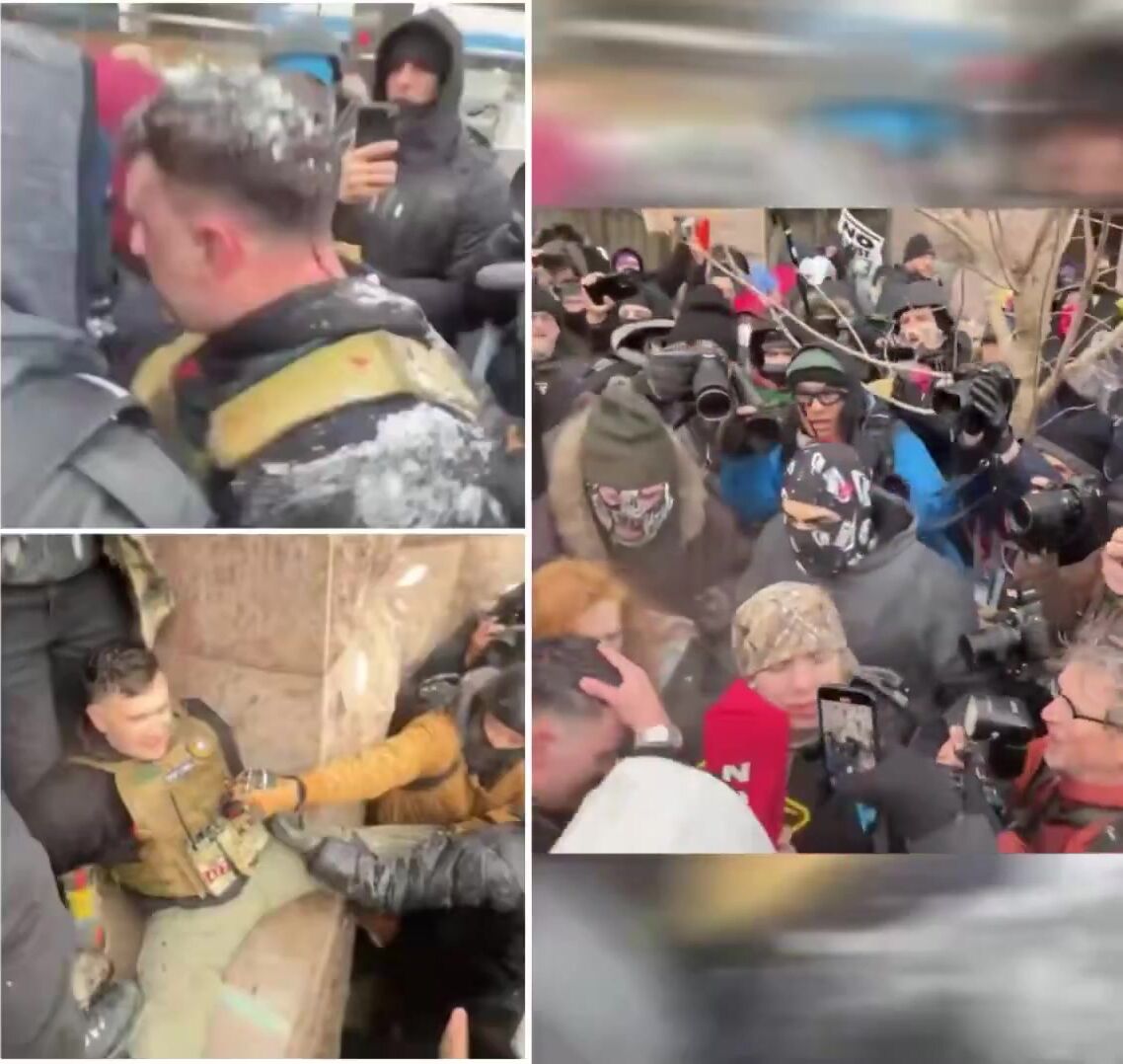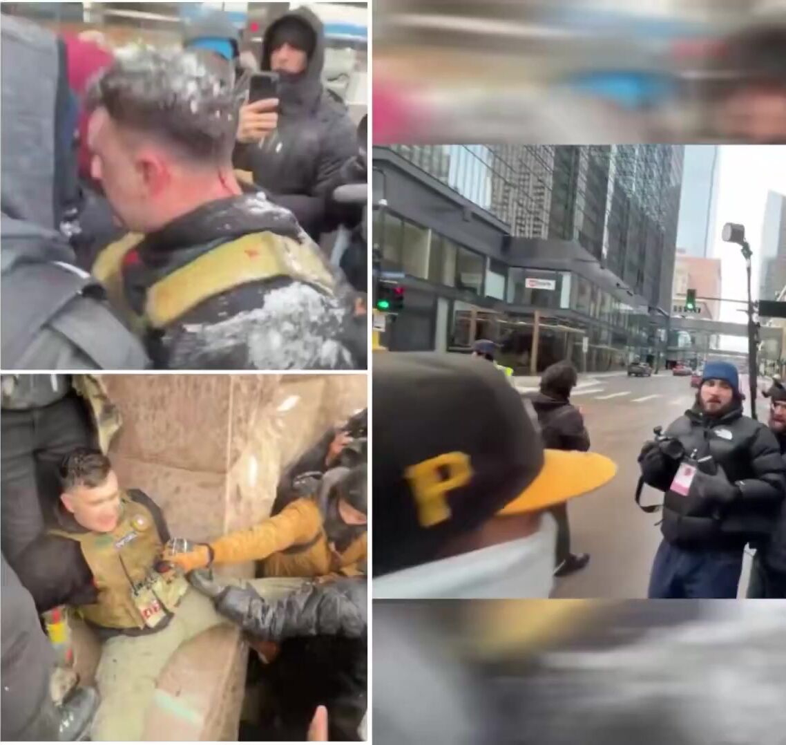 Jake Lang was violently surrounded and beaten by a mob outside Minneapolis City Hall