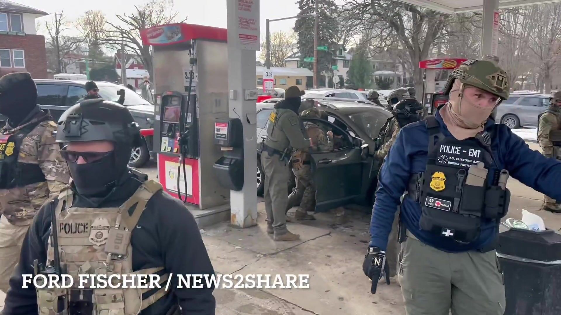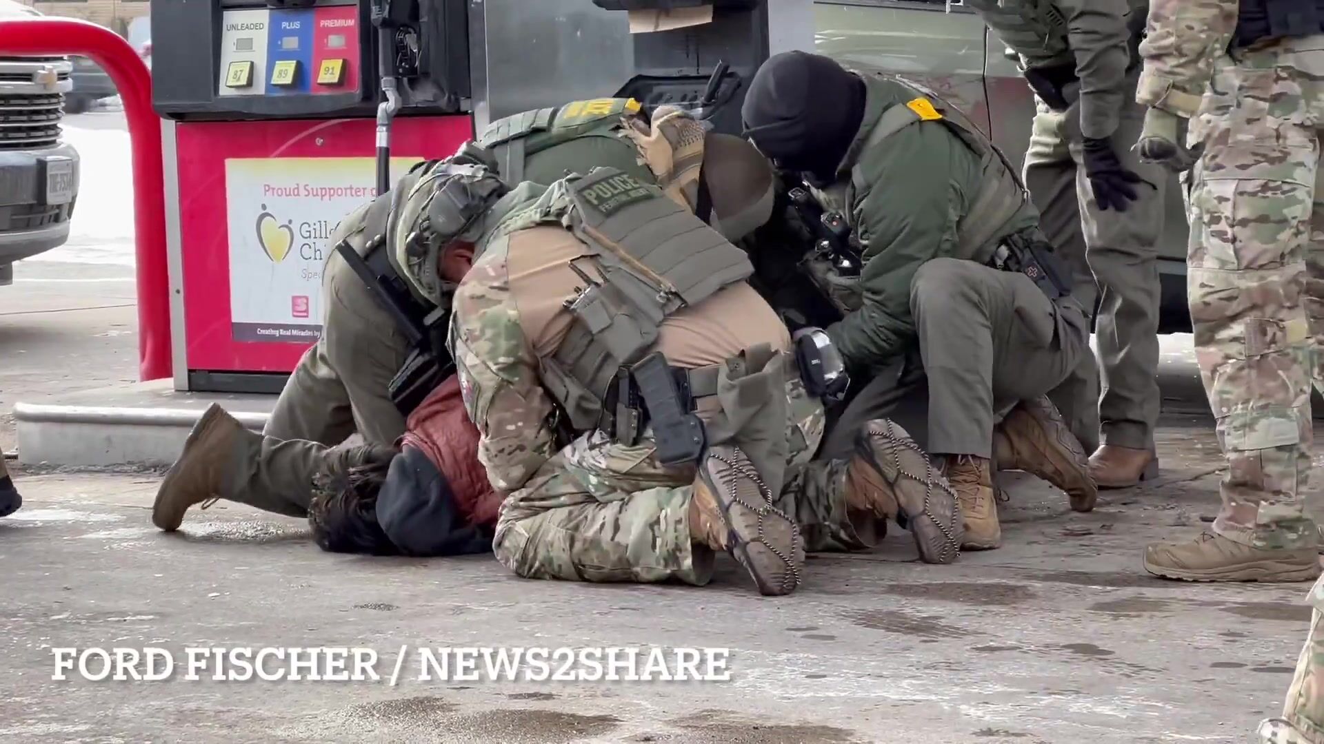Crazy scene at a gas station in St. Paul, Minnesota as Border Patrol agents busted out a car window, yanked out an anti-ICE activist, and made the arrest with others swarming the scene.