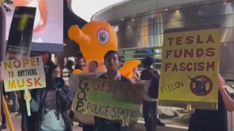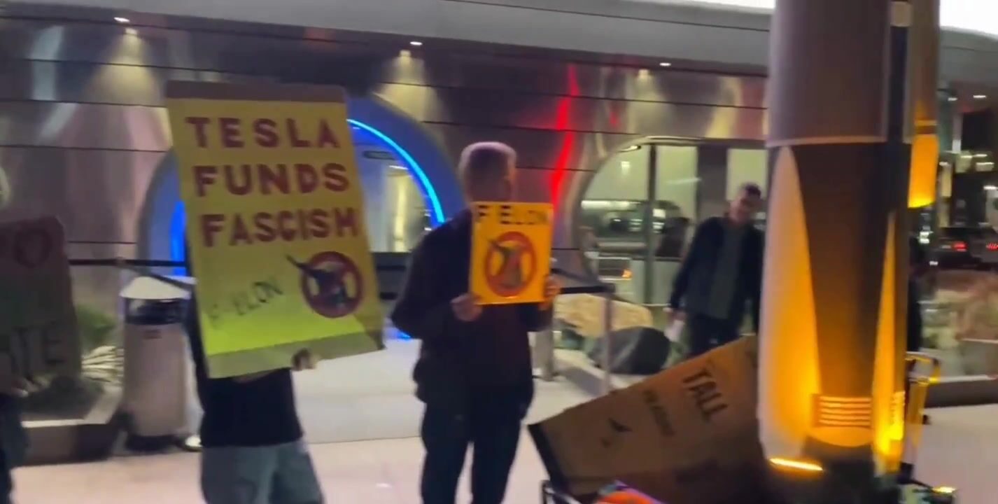 “Boycott Elon Musk“ chant protesters at Tesla Diner in West Hollywood