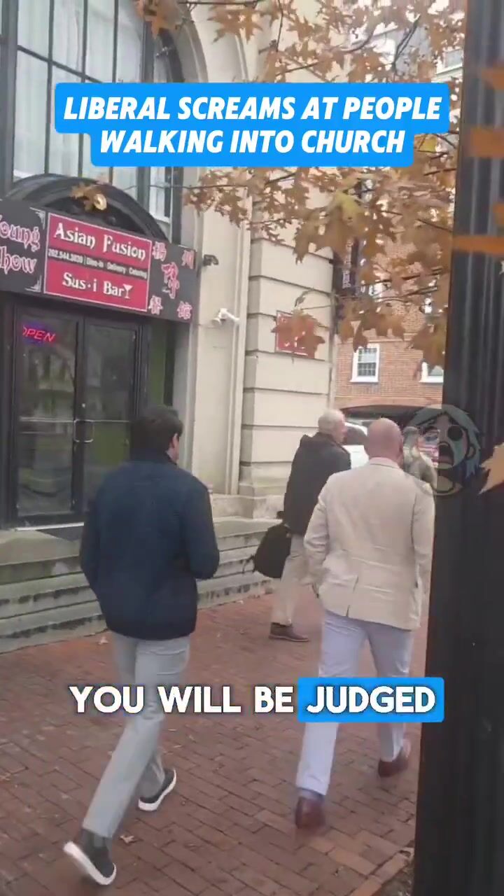 Demonically Possessed Liberals Scream at People Walking into Church.