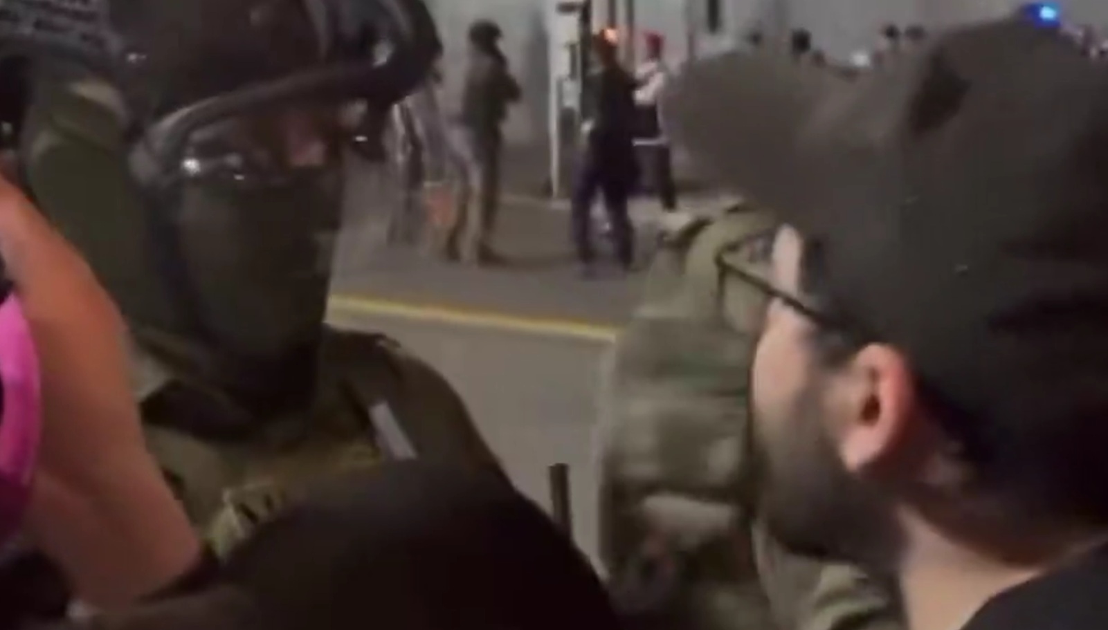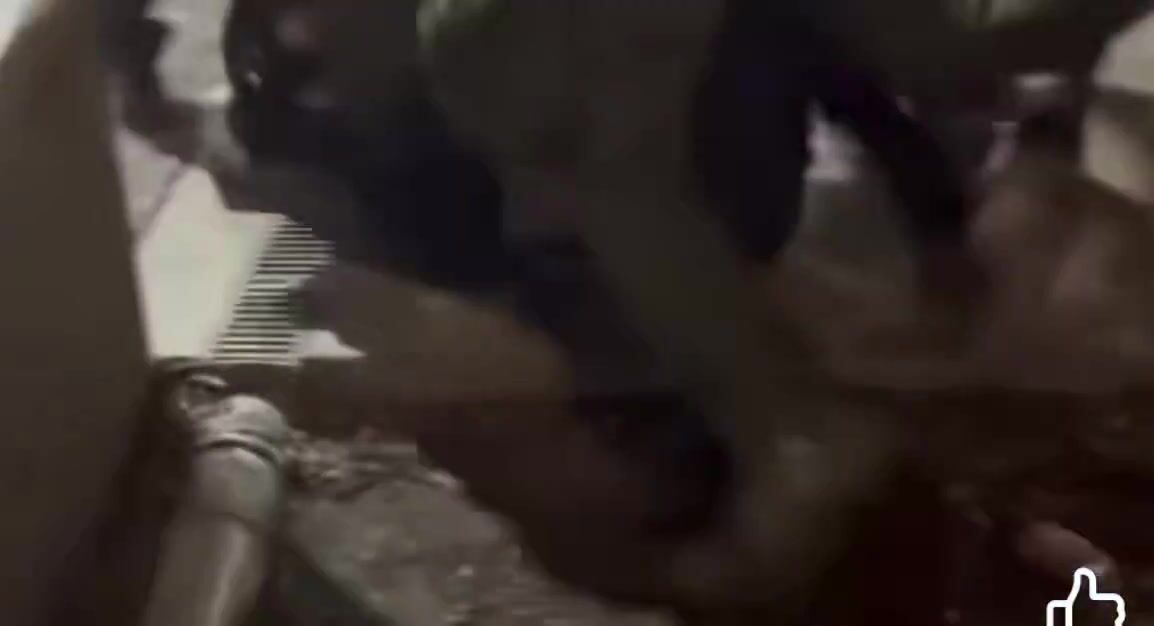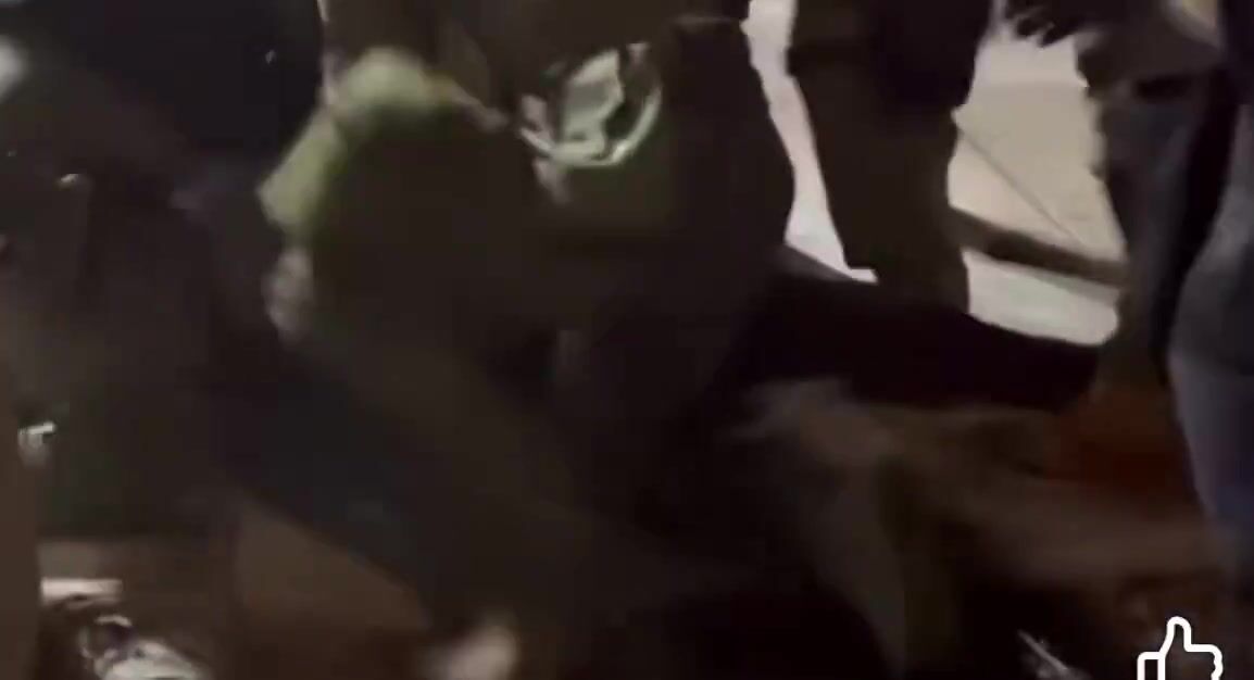 Dumb m0f0... if you gonna go down for striking an agent you might as well do it properly and use your fist LOL
