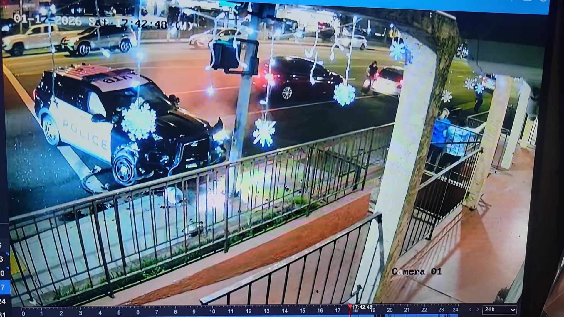The patrol vehicle did not appear to have its lights and sirens on at the time of the crash.