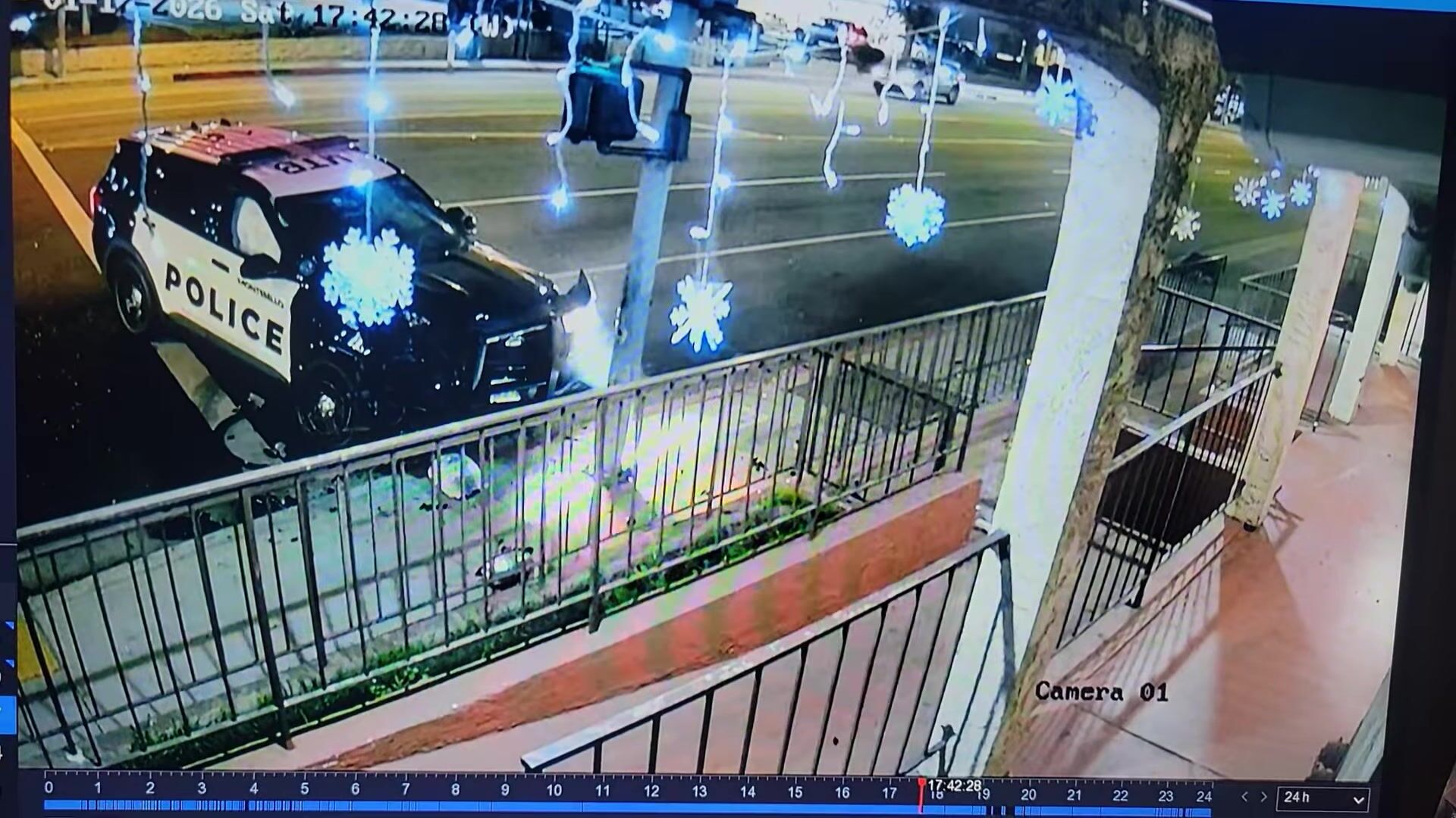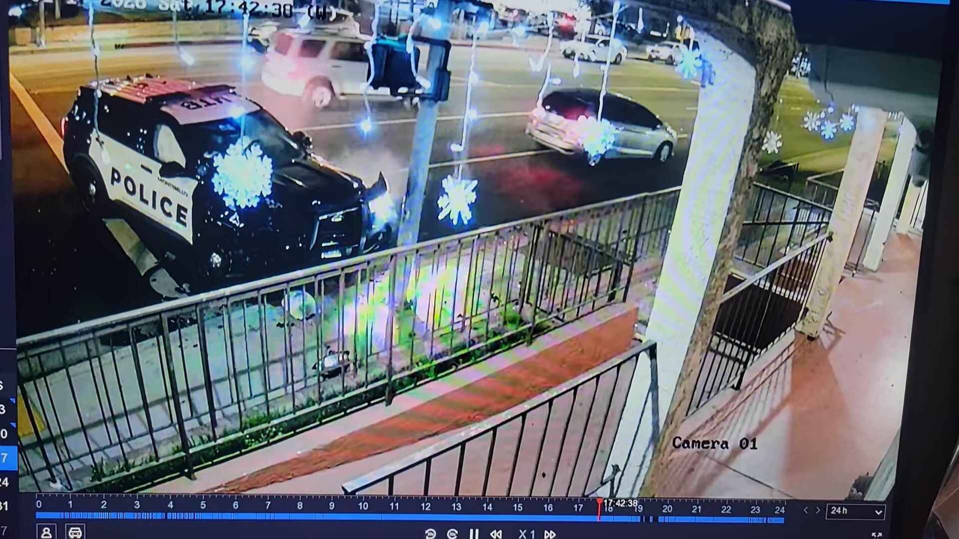 A dramatic video captured the moment a pedestrian was struck and critically injured by a Montebello Police Department patrol vehicle over the weekend.