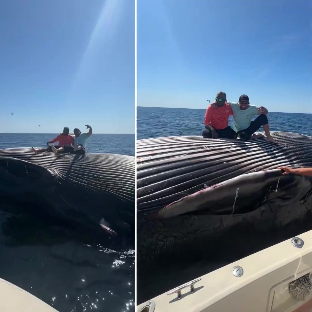 NEW: Two drunk fishermen pose for a photo on a floating dead whale.