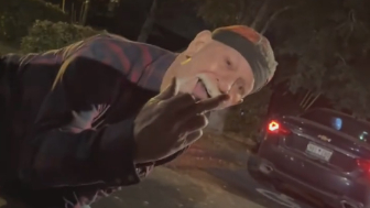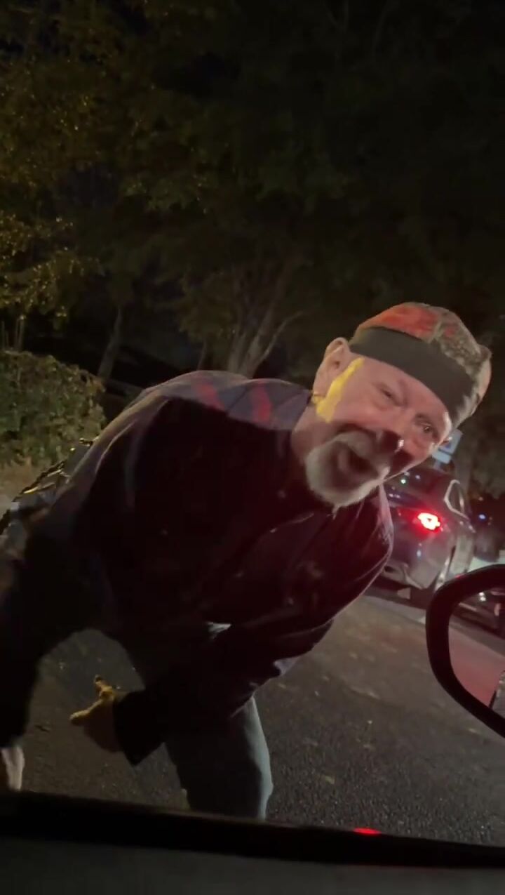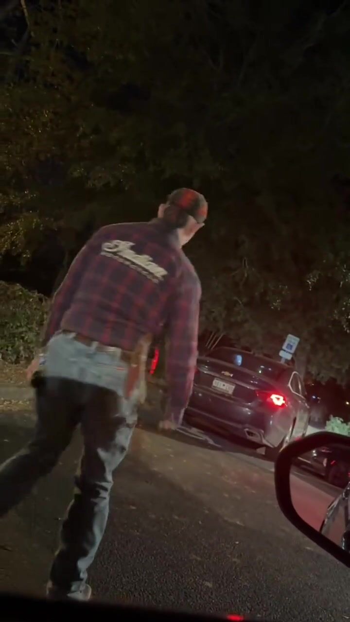 " My daughter and future son-in-law were picking up food at Wasabi in Summerville SC (near Charleston) and parked behind this man's car. My daughter gets out to go in and get the food while my SIL waits. This man begins yelling for him to move the car and even brandishes his pewpew at him. What you see is the confrontation after my daughter comes back to the car. Let me say this, I would have let him meet Jesus if he had walked up this close to my car. The tag seems to be 981CHQ on a Chevy. I have advised them to make a police report."