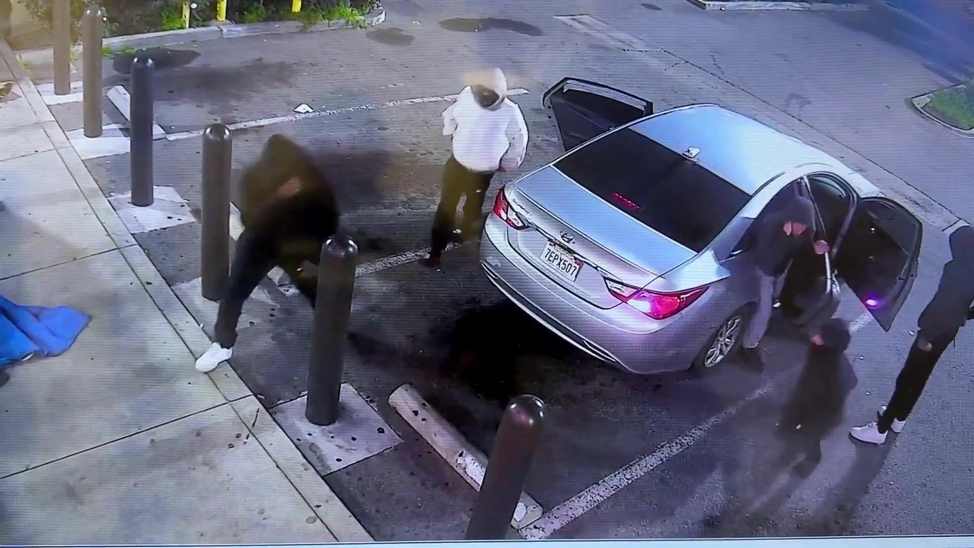 Security video caught the moment a group of masked individuals — believed to be teenagers — stole multiple cash registers from a 7-Eleven in East Los Angeles early Monday morning.