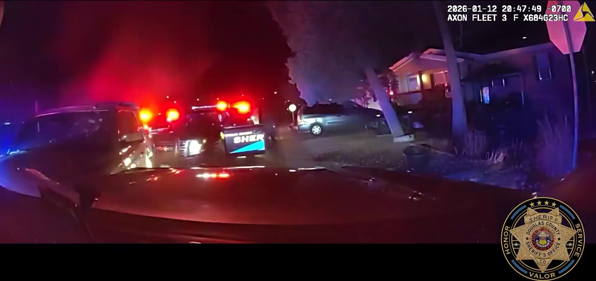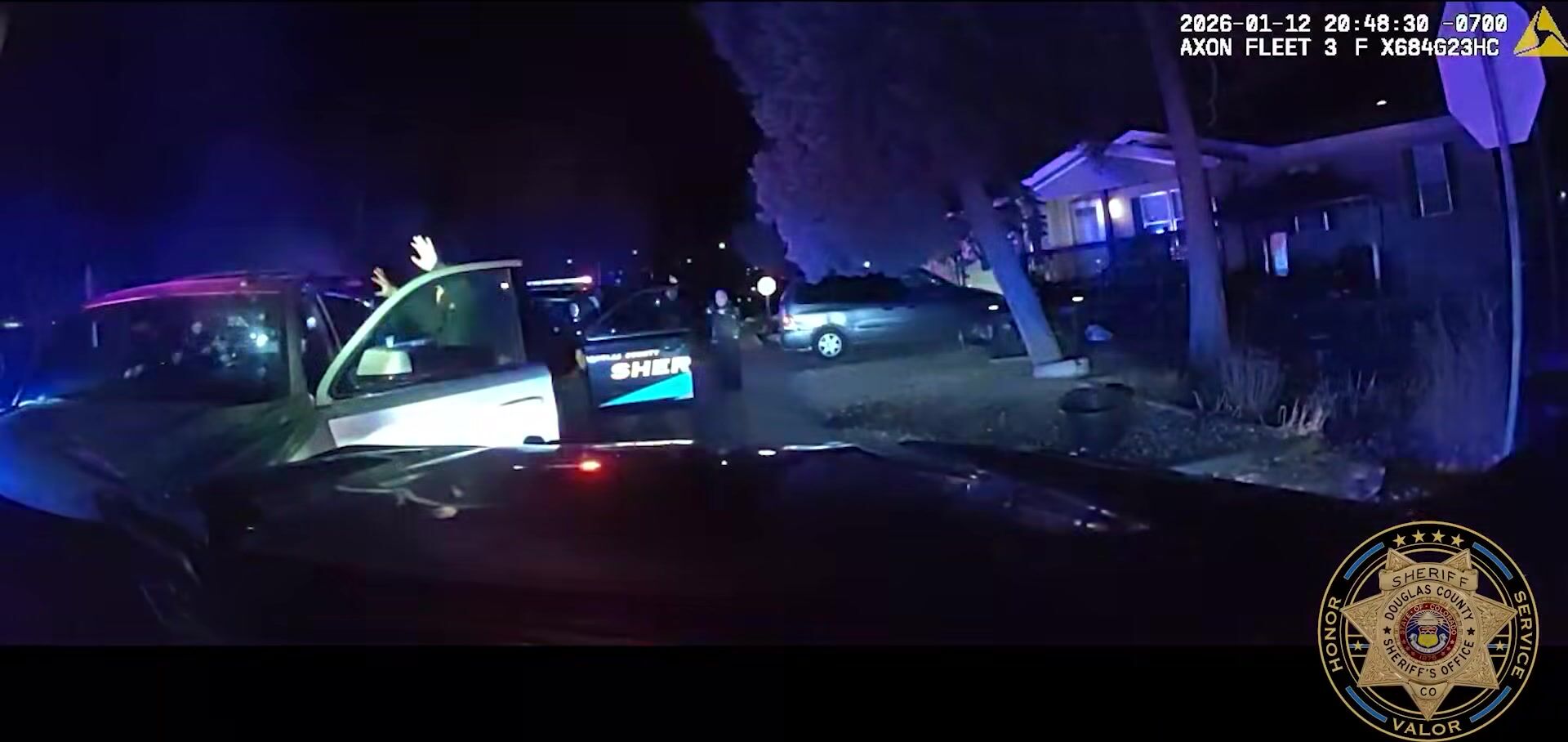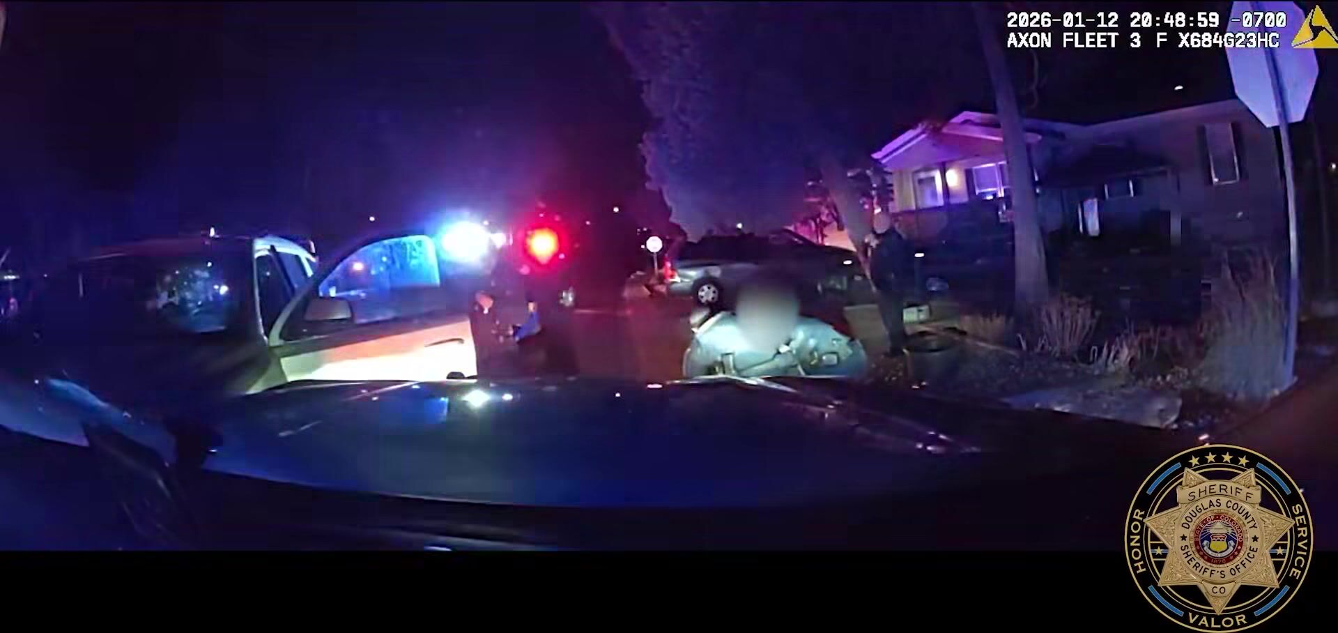 Dashcam video from the Douglas County Sheriff's Office shows the end of a pursuit that started with an armed carjacking on Monday. The sheriff's office said the suspect rammed a patrol vehicle and fired shots at deputies through the windshield of stolen vehicle.