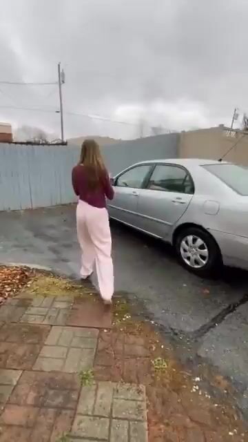 Looks to be in good shape, nothing wrong with that car. Of course she is excited: she got it for free. Many people never get a free car.