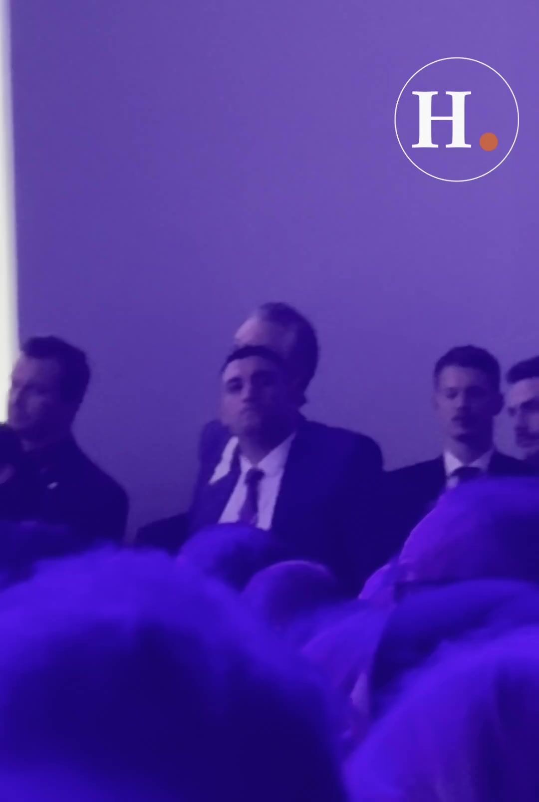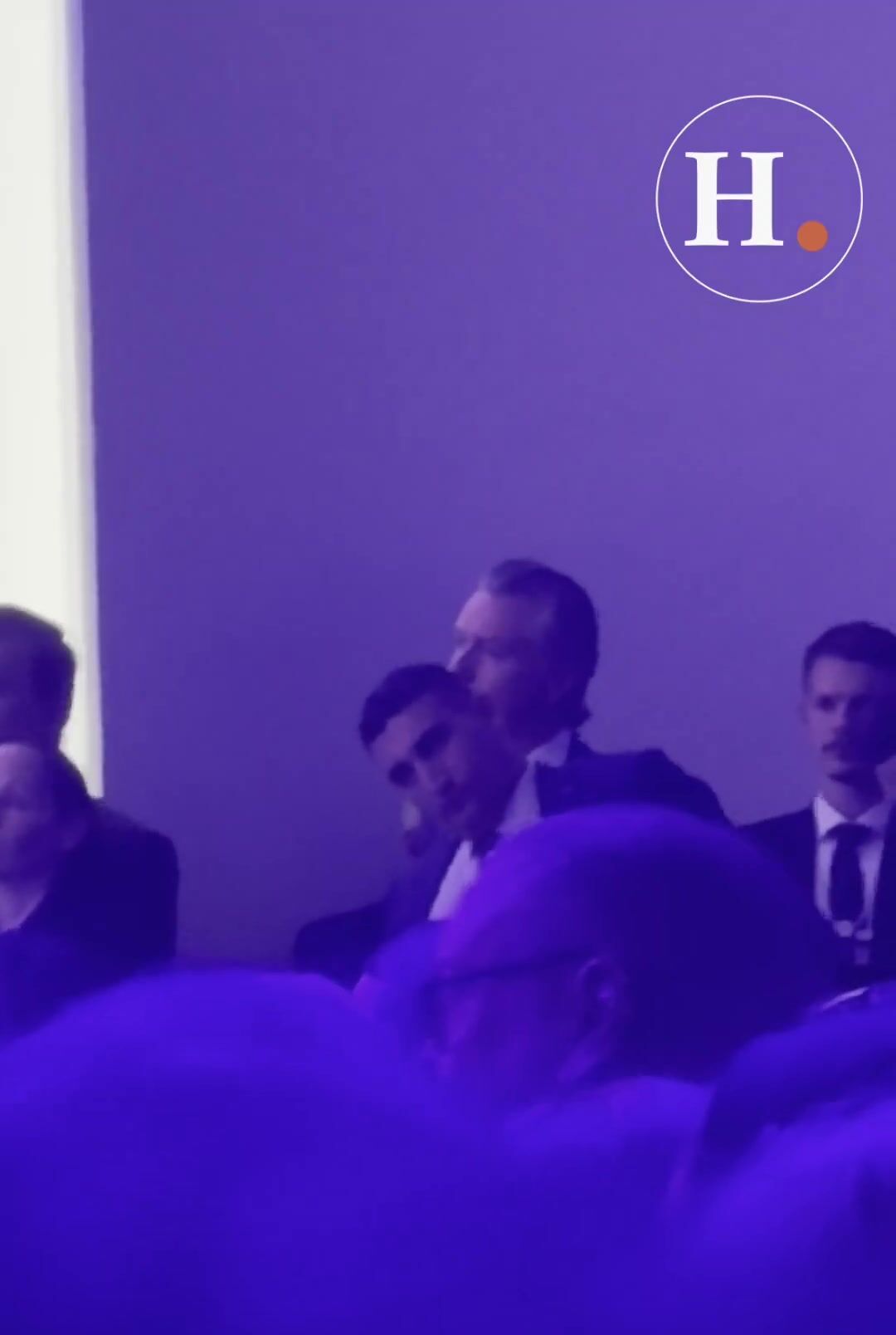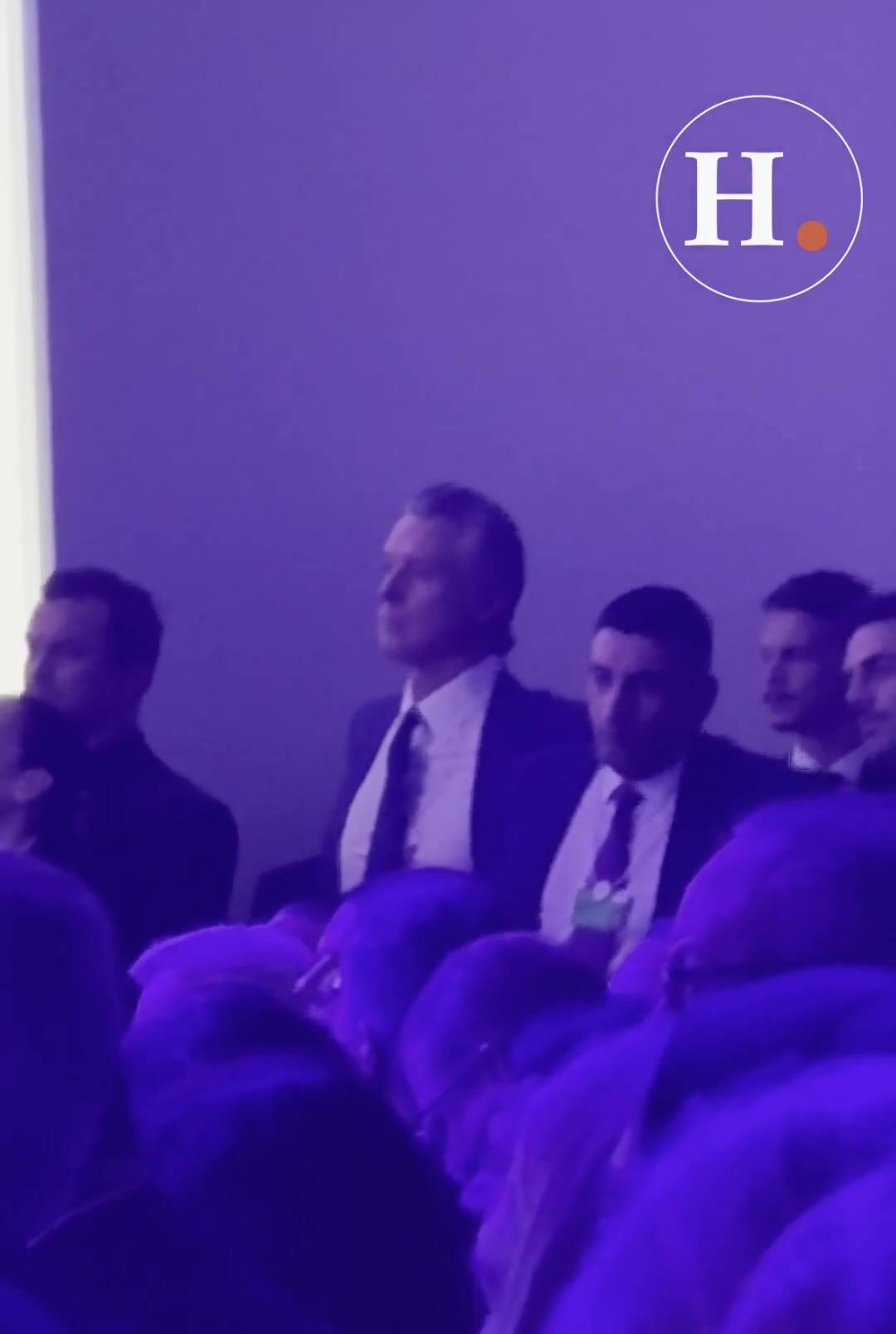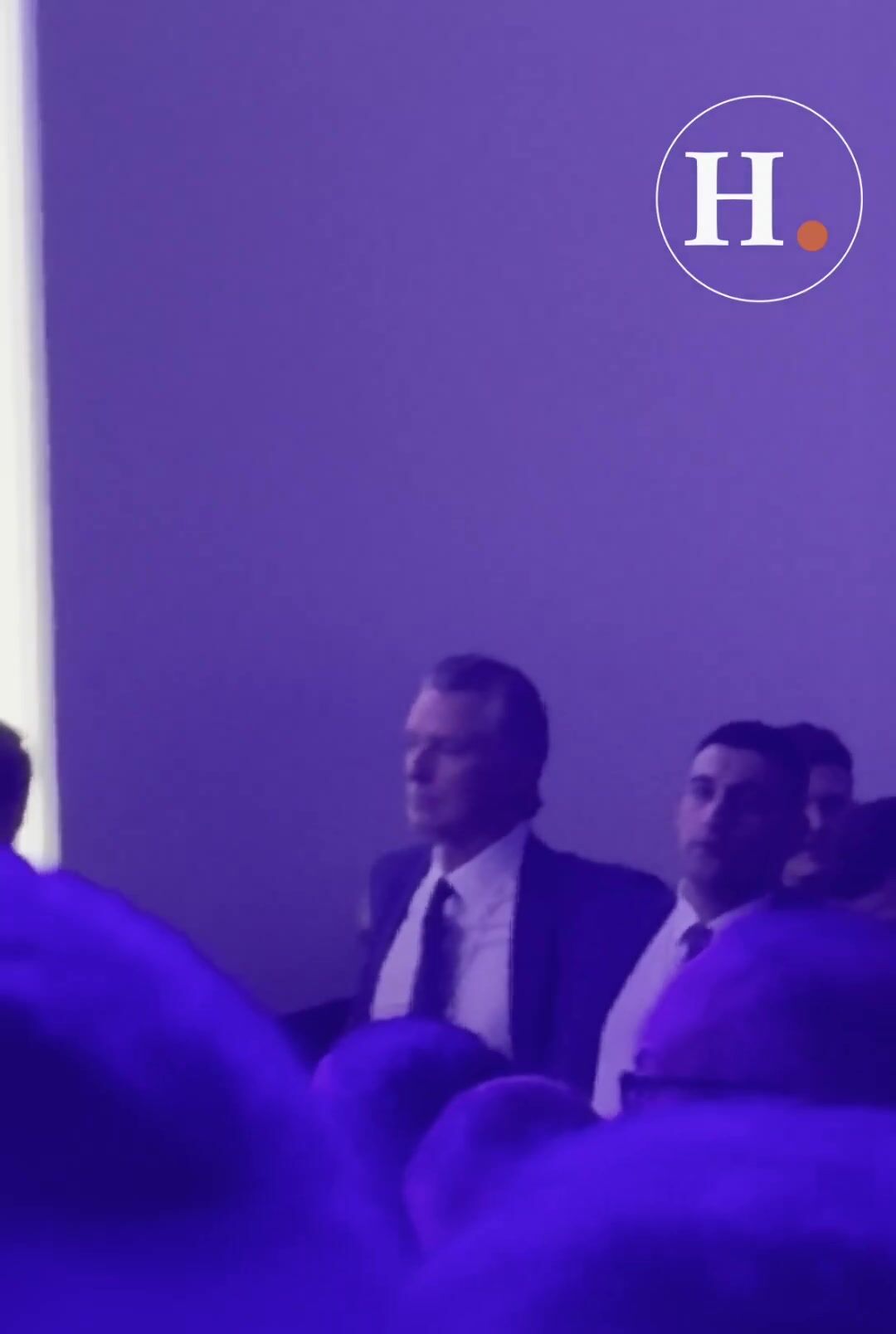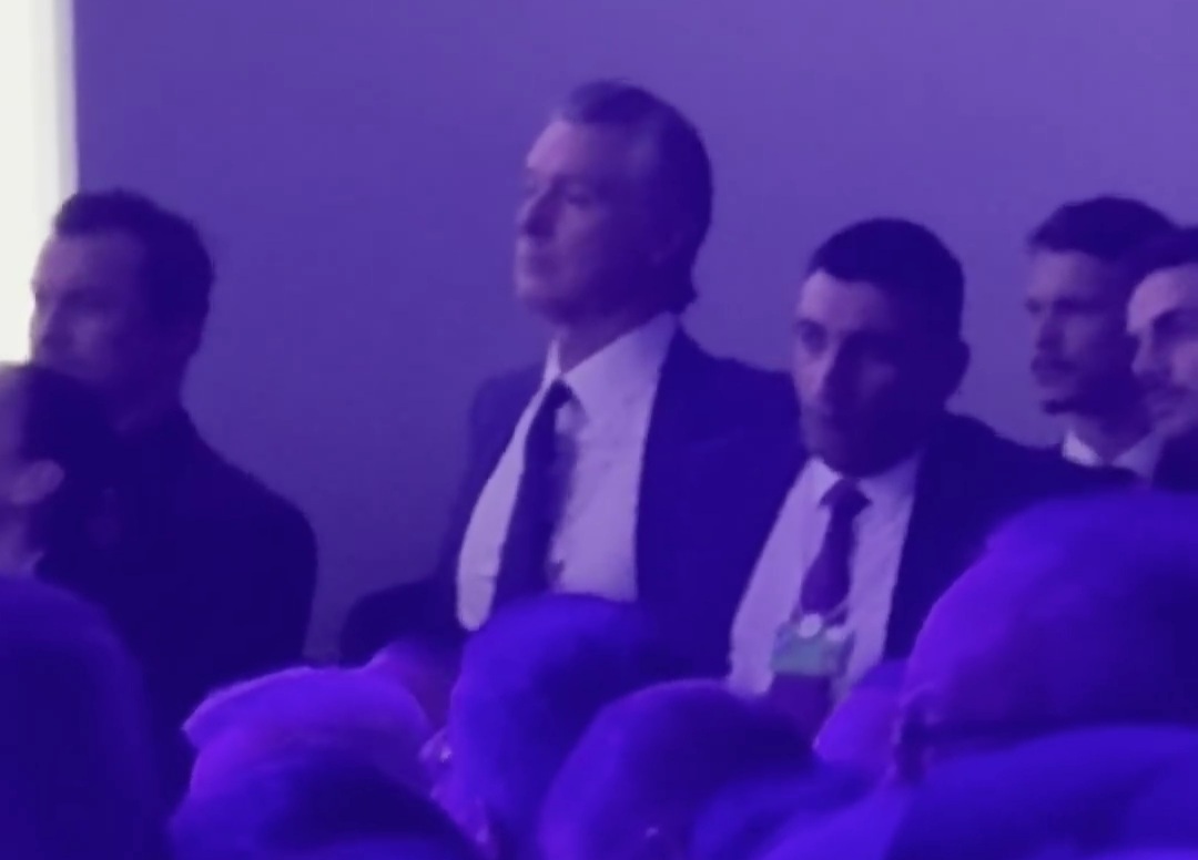 Gavin Newsom looks uneasy as he watches Trump deliver remarks to the World Economic Forum at Davos.