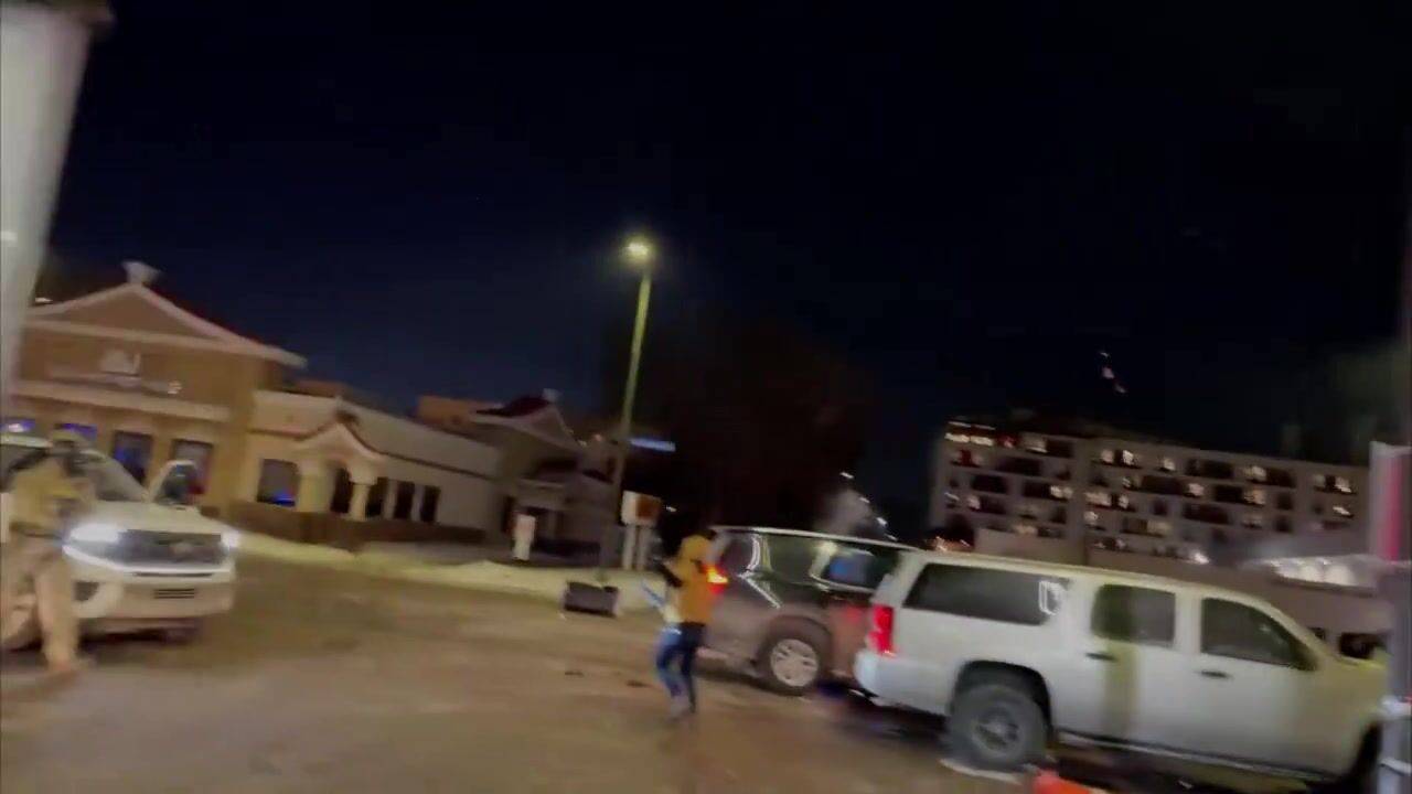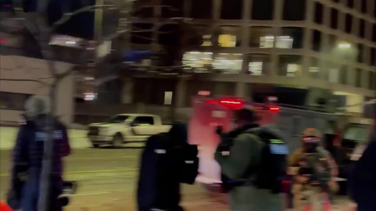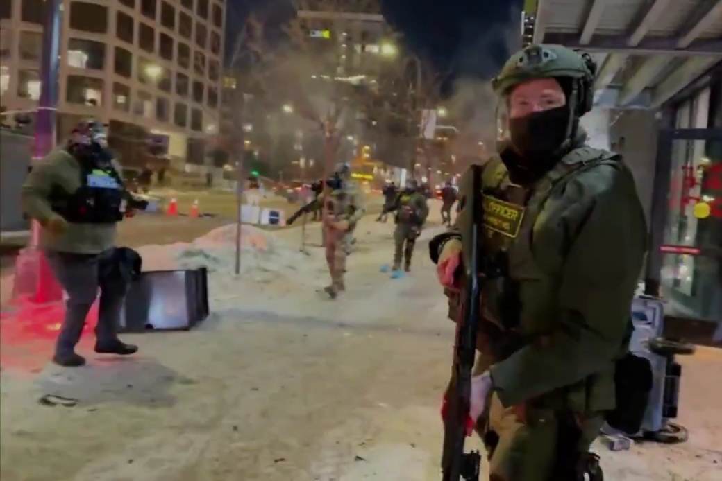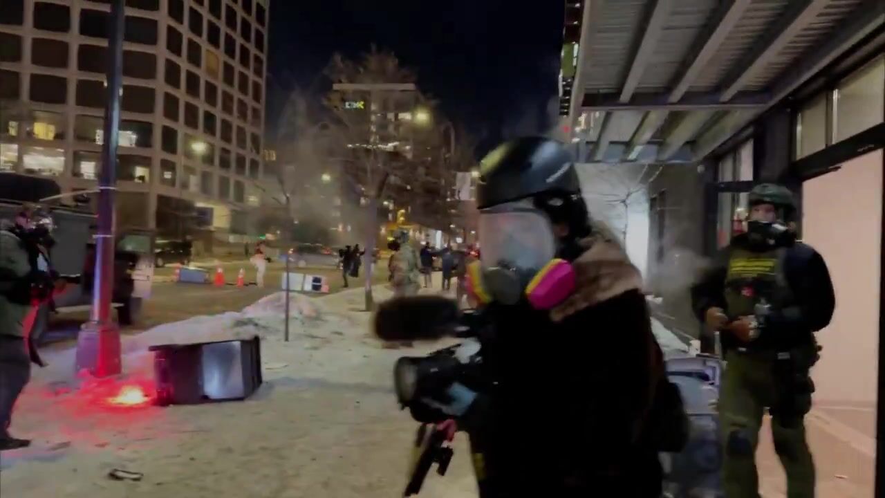 BREAKING: Someone throws something at the federal agent at the doorway