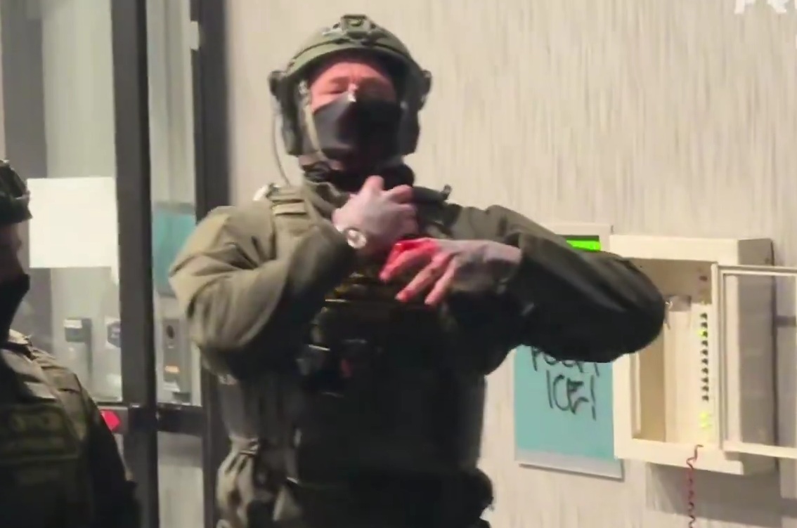 CALLING FOR HELP: Two federal officers were surrounded by a mob of far-left activists in the lobby of the Home 2 Suites by Hilton in Minneapolis Sunday evening.