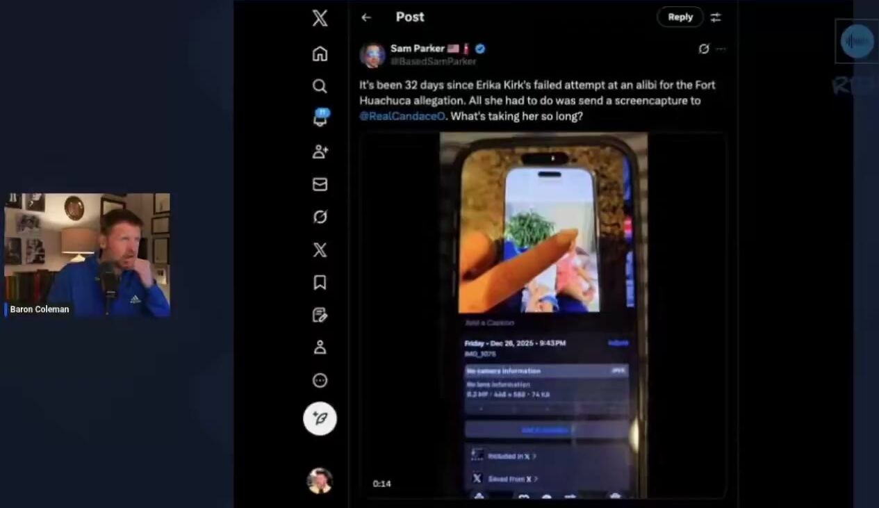 Baron Coleman puts words to what many are wondering about Erika Kirk’s alibi.