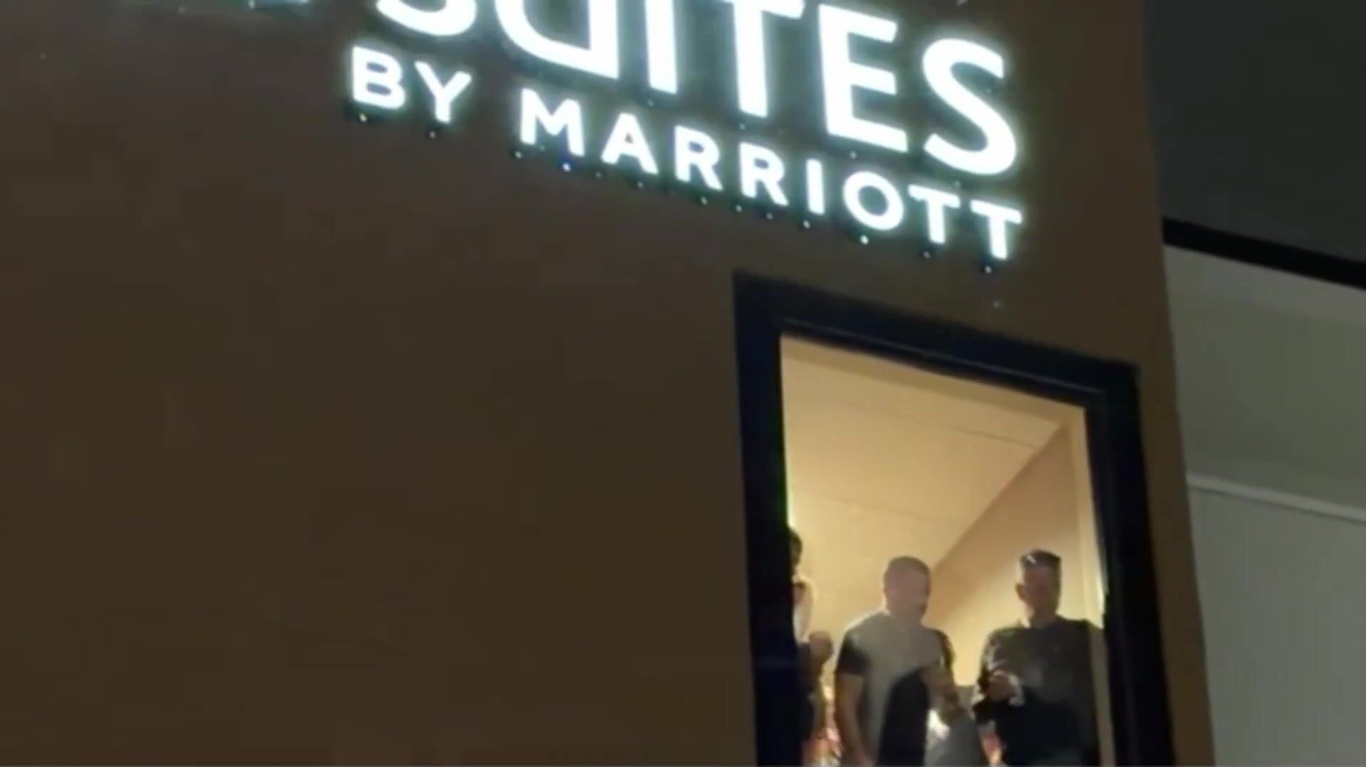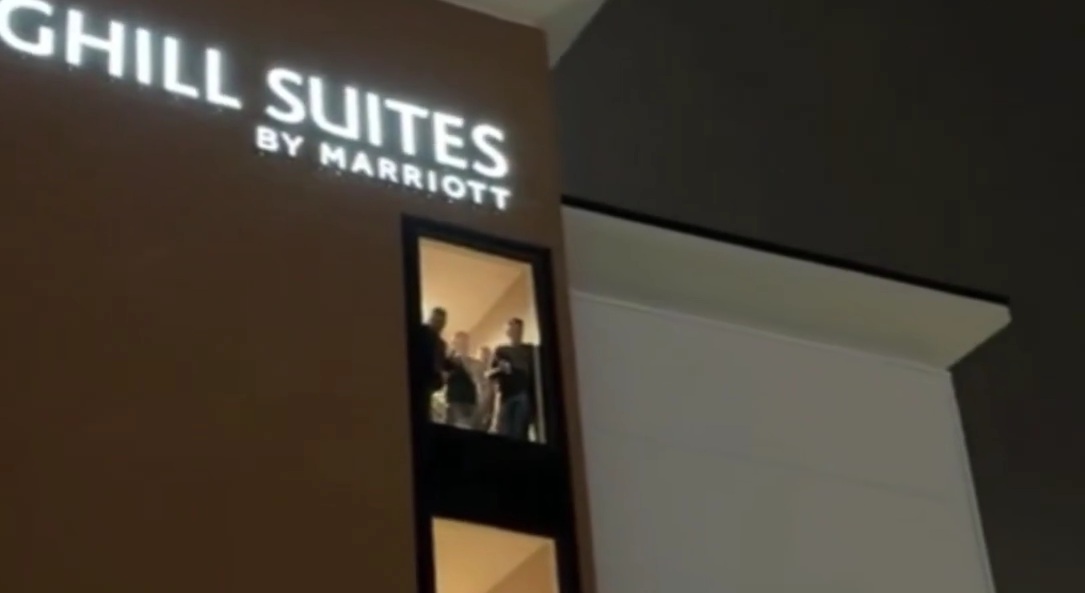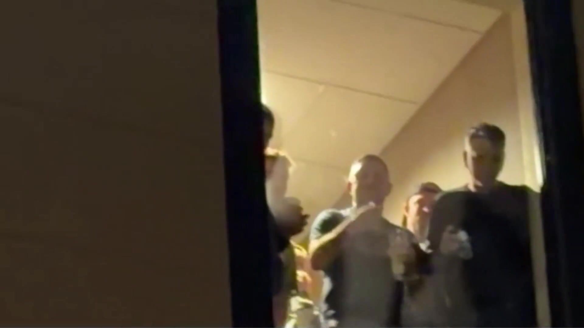 DHS agents are CRACKING BEERS in the window of the hotel leftist rioters are terrorizing tonight in Minnesota